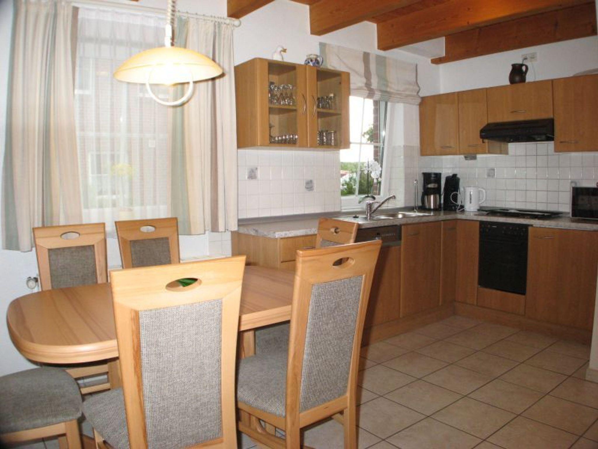 In der modern eingerichteten Wohnküche fehlt es an nichts. Backofen, Herd, Geschirrspüler, Mikrowelle, Kaffeemaschine, Senseo Pad Maschine, Wasserkocher, Flaschen / Babykostwärmer, Toaster, Kühlschrank sowie eine Vielzahl an Töpfen, Geschirr (auch Kindergeschirr) und viele weitere Küchenhelfer stehen zu Ihrer Verfügung.