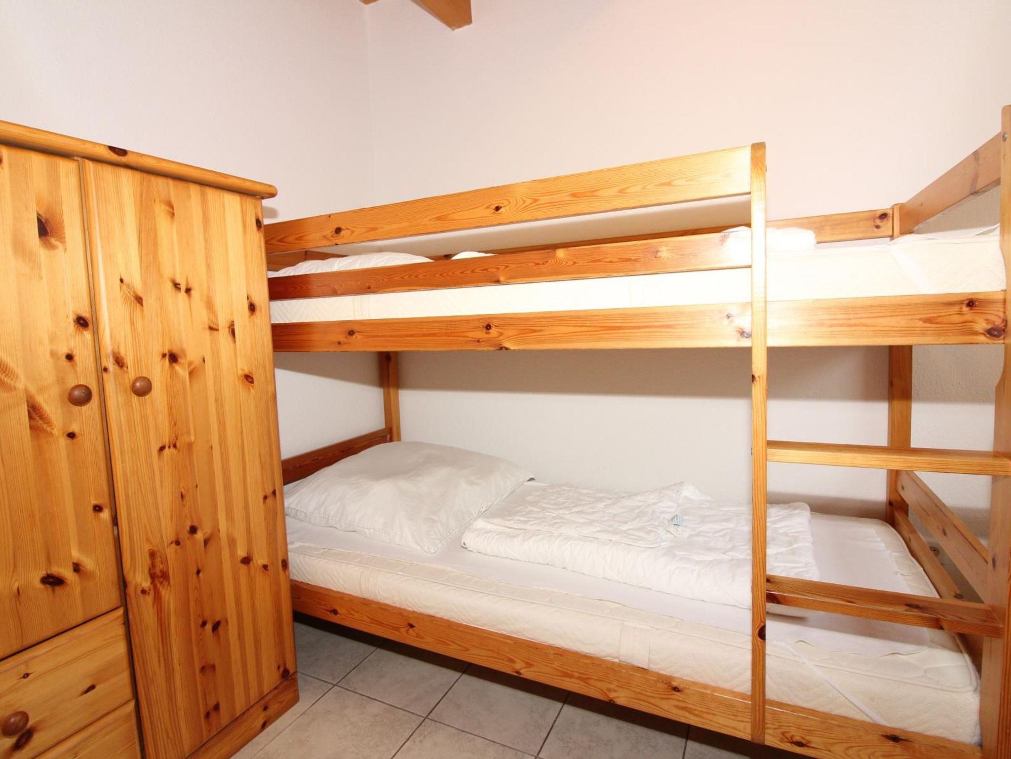 Einzelbetten, ein Schlafzimmer mit Doppelstockbetten.