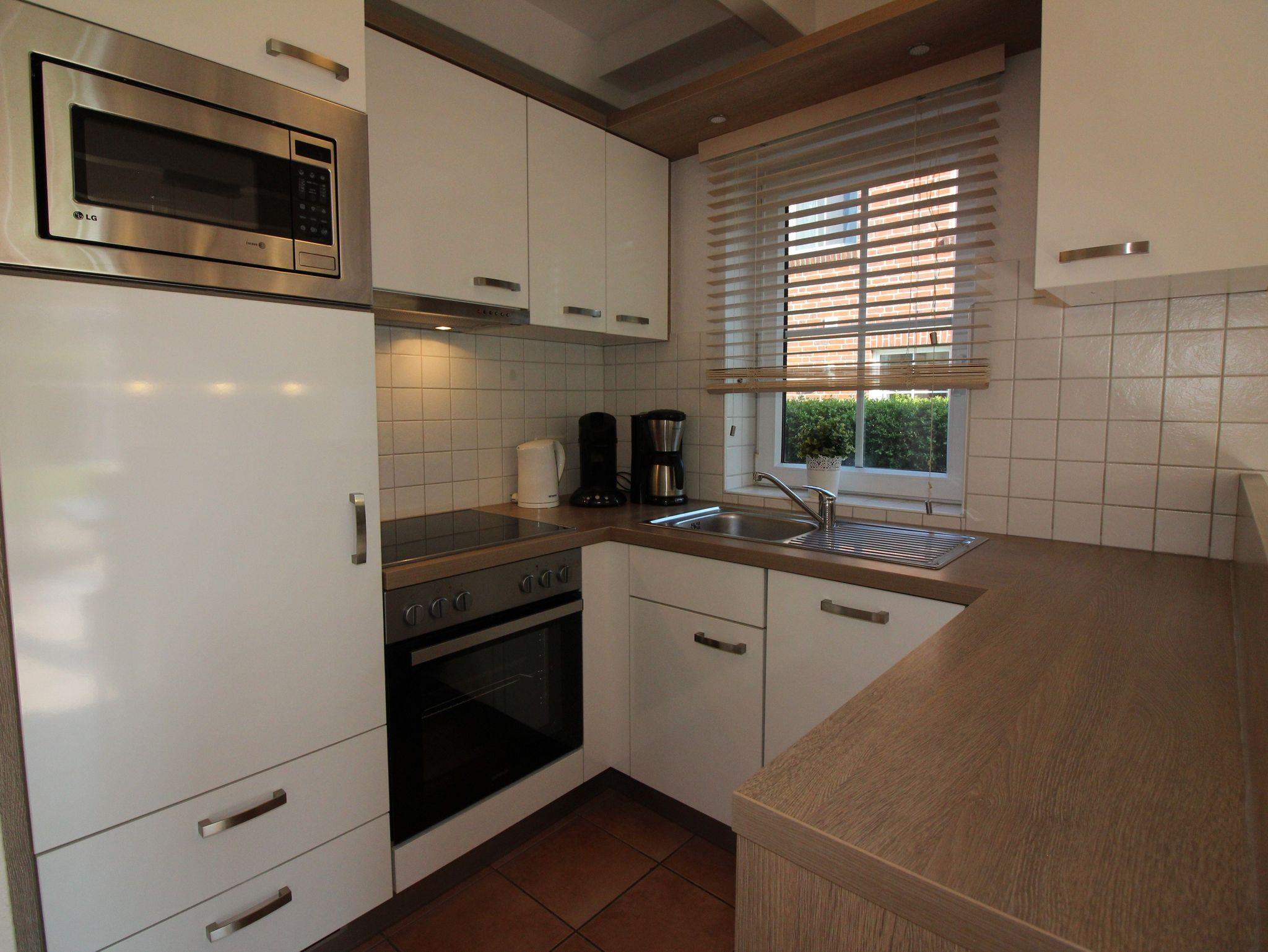 Die offene Küche ist hervorragend ausgestattet mit Backofen, Spülmaschine, Kühlschrank mit Tiefkühlfach,