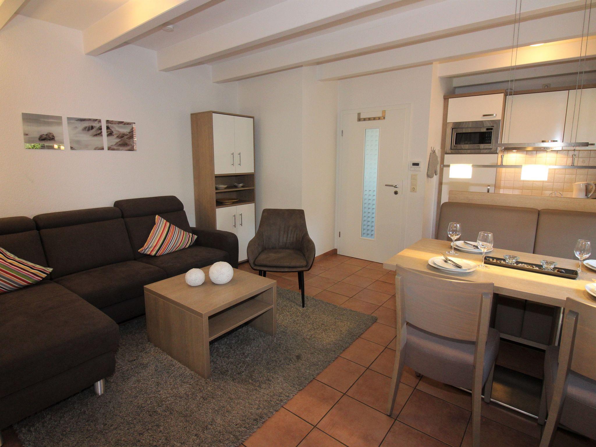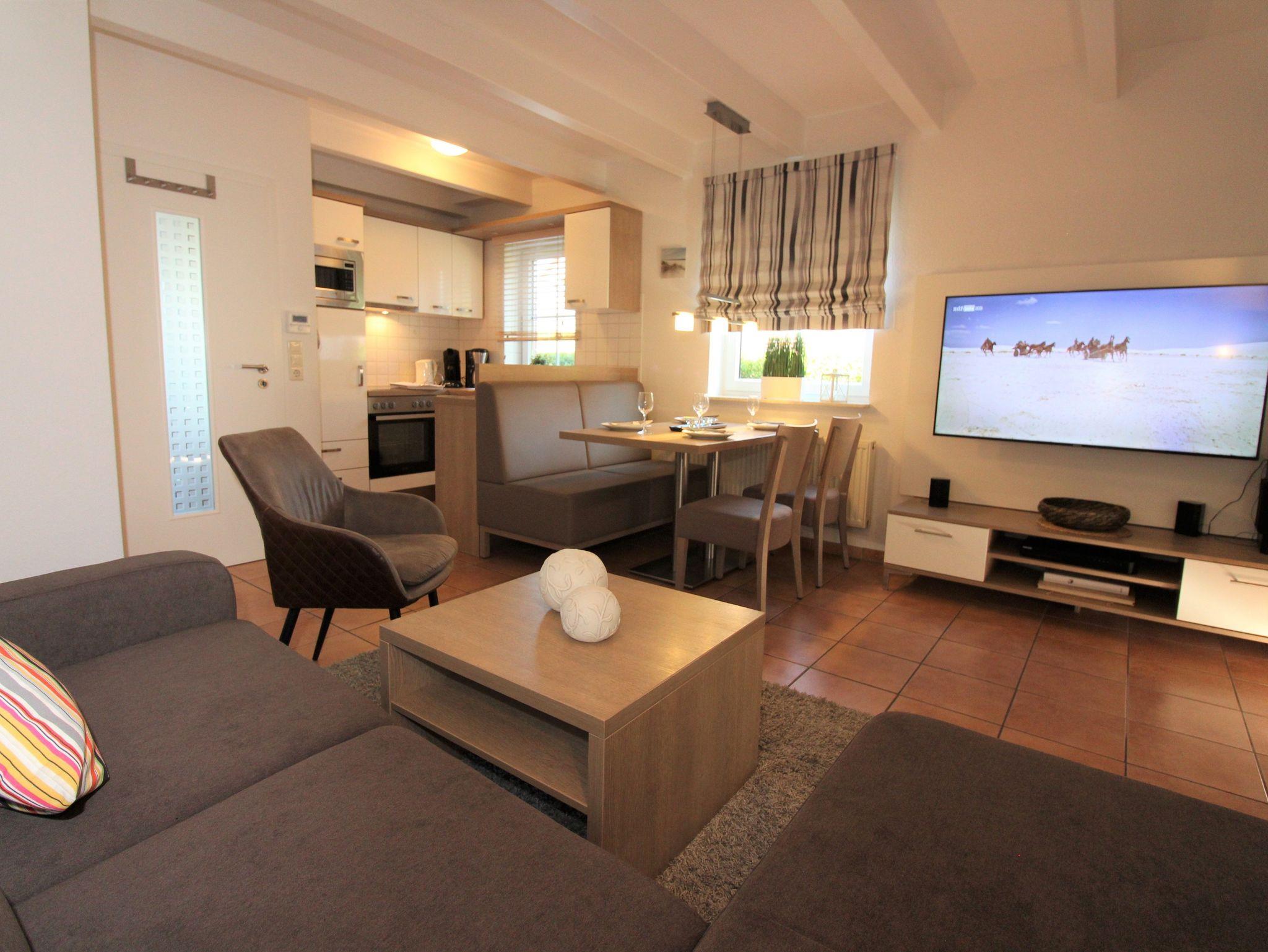 Der Wohnbereich verwöhnt Sie mit bequemer Couch, 55 LCD TV mit Kabelanschluss, Blue-ray-Player und