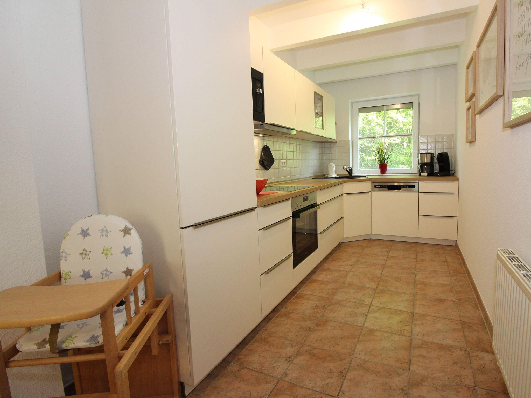 - große, hervorragend ausgestattete Küche: Backofen, Mikrowelle, Spülmaschine, Kühlschrank mitGefrierfach, Kaffeemaschine, Wasser/Eierkocher, Toaster & Mixer, Gläser, Geschirr, Töpfe, Kuchenformen & kleine Küchenhelfer