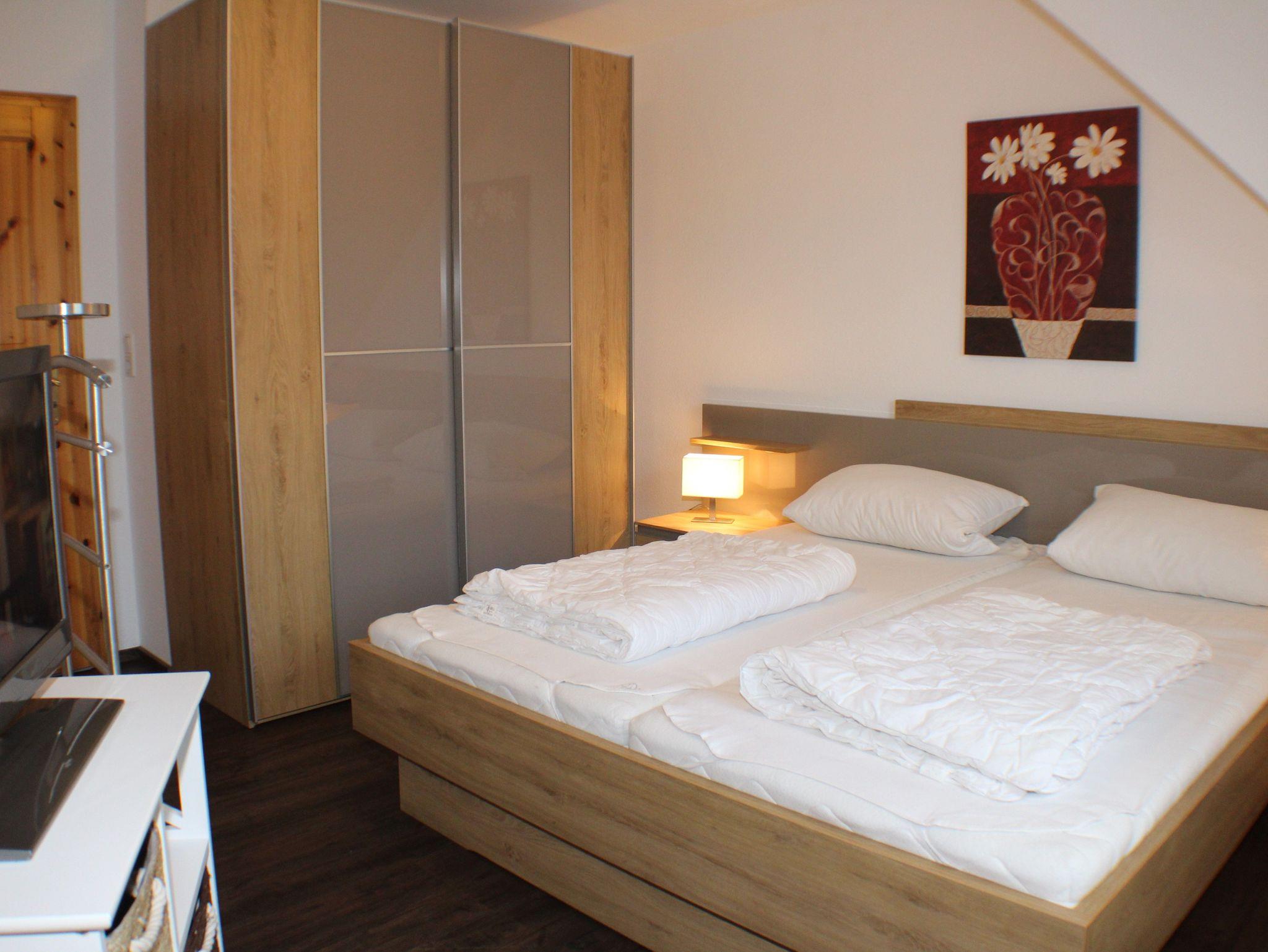 - 1.Schlafzimmer: Doppelbett, Flachbild-TV, Radiowecker & Tresor für Ihre Wertsachen