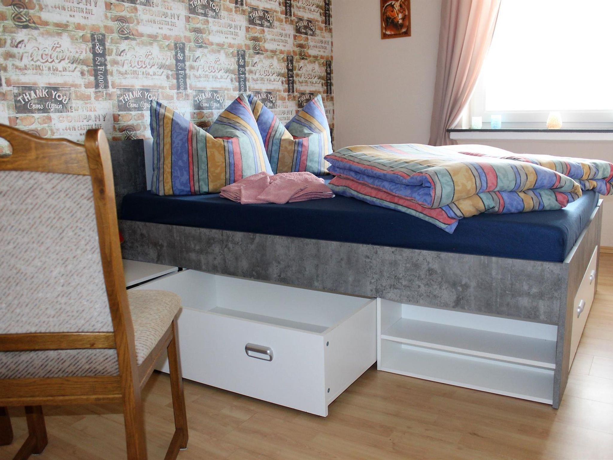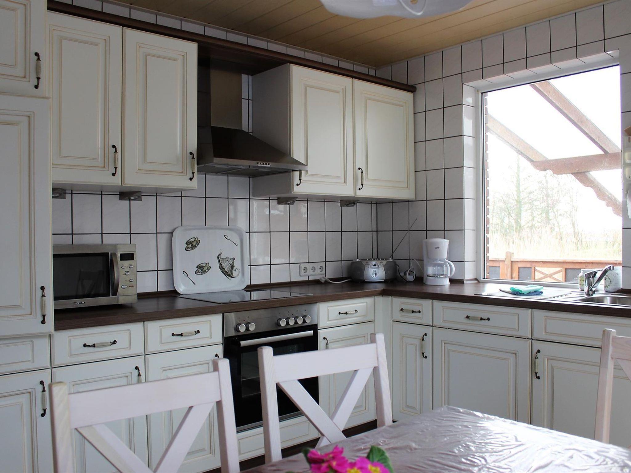 Das 78qm große Haus bietet Platz für 6 Personen. Die geräumige Küche ist voll ausgestattet u.a. mit Backofen, Kühlschrank mit Eisfach, Geschirrspüler, Mikrowelle, Kaffeemaschine, Toaster, Eierkocher und Wasserkocher. Im Wohnzimmer mit SatellitenTV, DVD-Player und Stereoanlage können Sie gemütliche Stunden am Kaminofen verbringen. Im Badezimmer finden Sie Badewanne und Dusche sowie einen Fön. Die 3 separaten Schlafzimmer teilen sich auf in 1 Zimmer mit Doppelbett (1,40m) und genügend Stauraum unter dem Bett, 1 Schlafzimmer mit Doppelbett und Schrank, (hier kann auch ein Babybett gestellt werden) sowie ein Kinderzimmer mit Etagenbett und Schrank. Zusätzlich stehen in einem an die Küche angrenzenden Raum, der auch viel Fläche zum Abstellen bietet, eine Waschmaschine, ein Wäscheständer, Bügeleisen und Bügelbrett zur Verfügung. Auf Wunsch wird auch ein Hundekorb bereitgestellt.