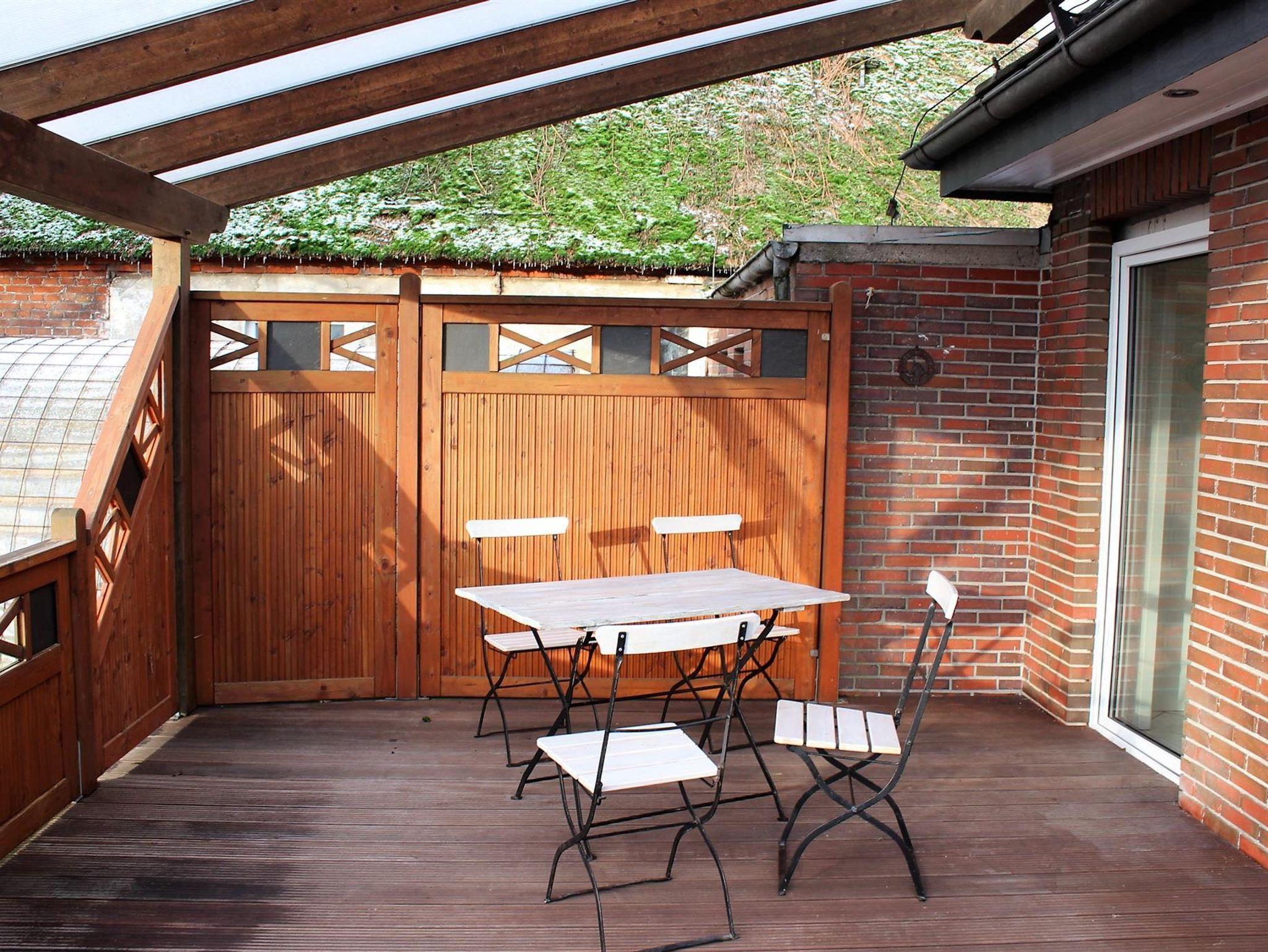 Eine große Rasenfläche am Haus bietet viel Platz für Kinder zum Toben, Torwandschießen oder Basketballspielen. Die ca. 40qm große komplett umzäunte Terrasse mit Sitzgarnitur und Sonnenliegen bietet einen schönen Blick auf den großen Teich und die umliegenden Ländereien.