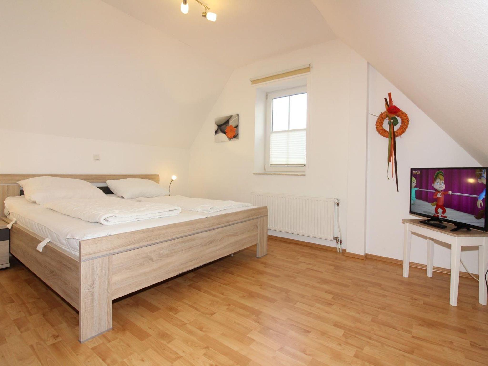 - Schlafzimmer mit Doppelbett und LCD-TV