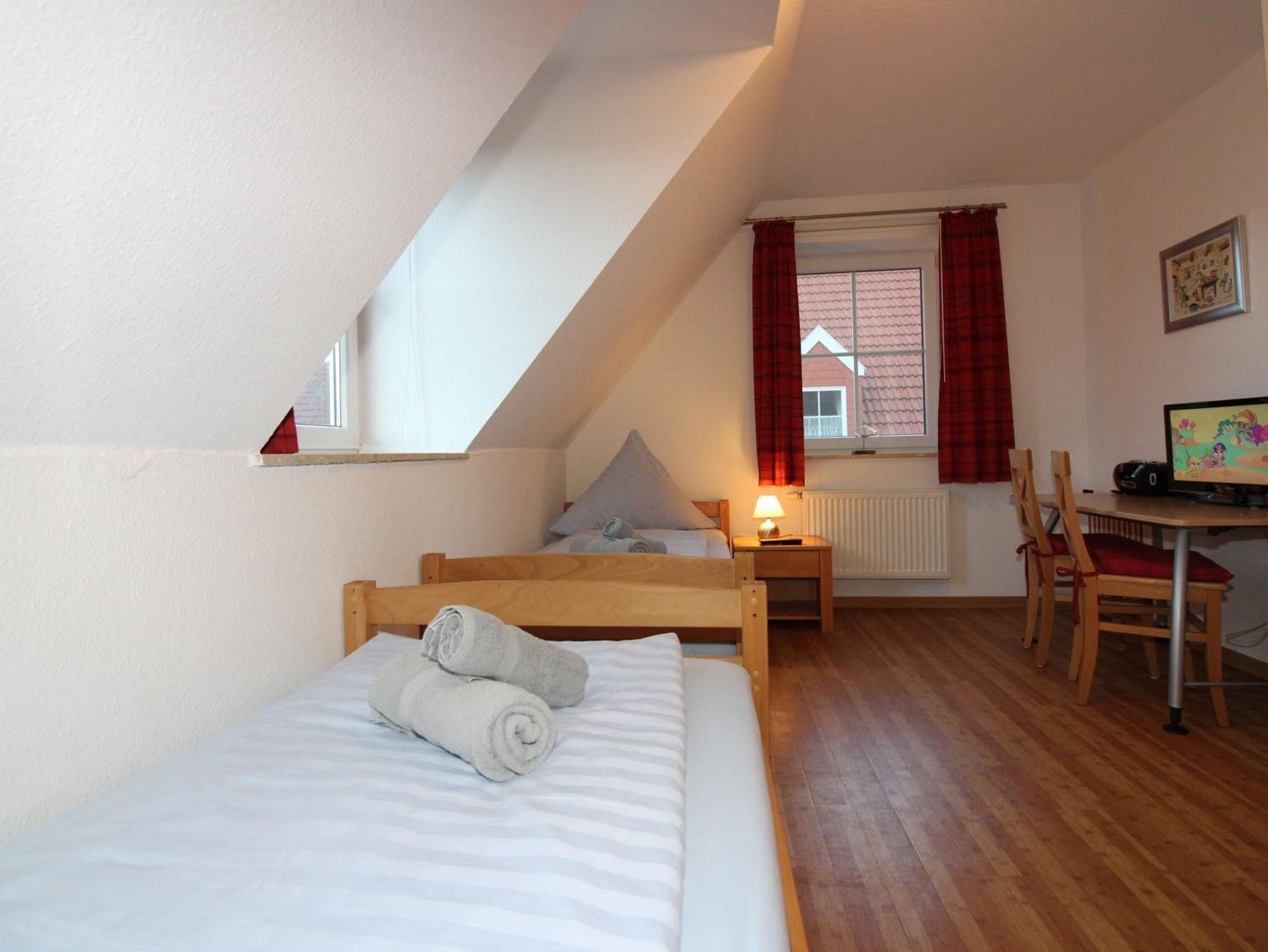 - Schlafzimmer mit zwei getrennten Betten, Schreibplatz und 32 Smart-TV.