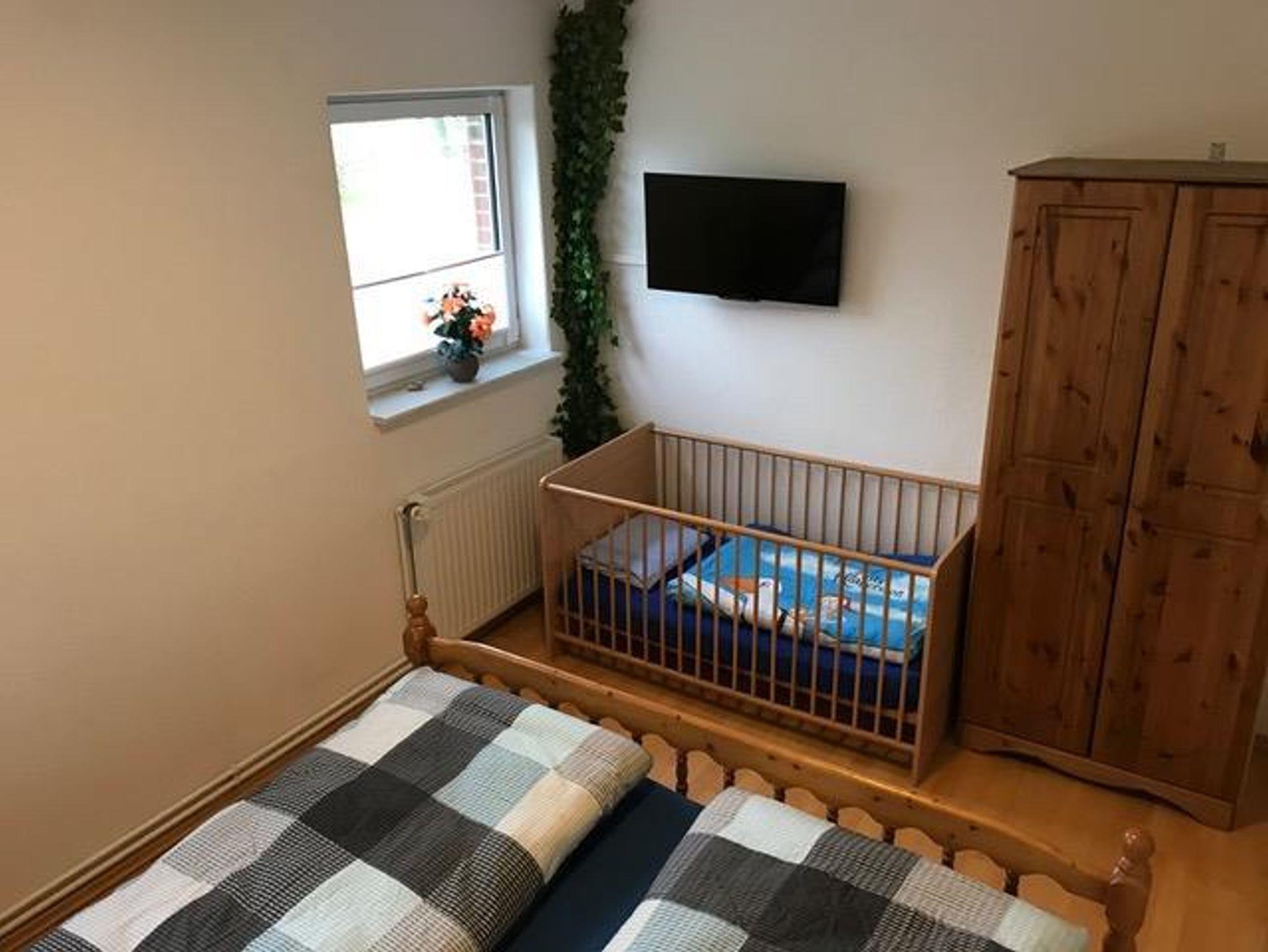 Unsere Ferienwohnung 1 im Erdgeschoss ist aufgeteilt in ein Kinderzimmer mit einem Etagenbett 2 x 90x200cm, und einer Wäschekommode. Verdunklungsmöglichkeiten durch elekrische Aussenrolläden. Das Elternschlafzimmer ist ausgestattet mit einem Doppelbett 180x200cm, Nachtschränken und einem Wäscheschrank sowie einem 32 TV mit Satellitenfernsehen. Ein Kinderbett ist ebenfalls vorhanden. Auch dieses Zimmer kann mit elektrischen Aussenrolläden verdunkelt werden. Im großen lichtdurchfluteten Wohnzimmer mit großem Kuschelsofa befindet sich ein Esstisch mit vier Stühlen. Hier können Sie abends spielen und am Tage speisen. Ein 55 Satelliten TV und ein DAB+ Radio sind vorhanden. Im komplett gefliesten Badezimmer befindet sich ein Wäscheregal, eine Dusche, WC, Waschbecken sowie ein Handtuchtrocknerfür wohlig warme Handtücher nach dem Duschen. In der Küche befindet sich eine Küchenzeile mit Backofen, Kochfeld mit Ceranfeld, Geschirrspüler, Kühlschrank mit Gefrierfach, Kaffeemaschine, Wasserkocher und Eierkocher sowie ausreichend Besteck, Teller, Gläser usw. für 4 Personen. Die Wohnung ist komplett gefliest - im Wohnzimmer, Kinderzimmer und Schlafzimmer gibt es eine Fussbodenheizung. In der Wohnung ist Glasfaser WLAN vorhanden.
