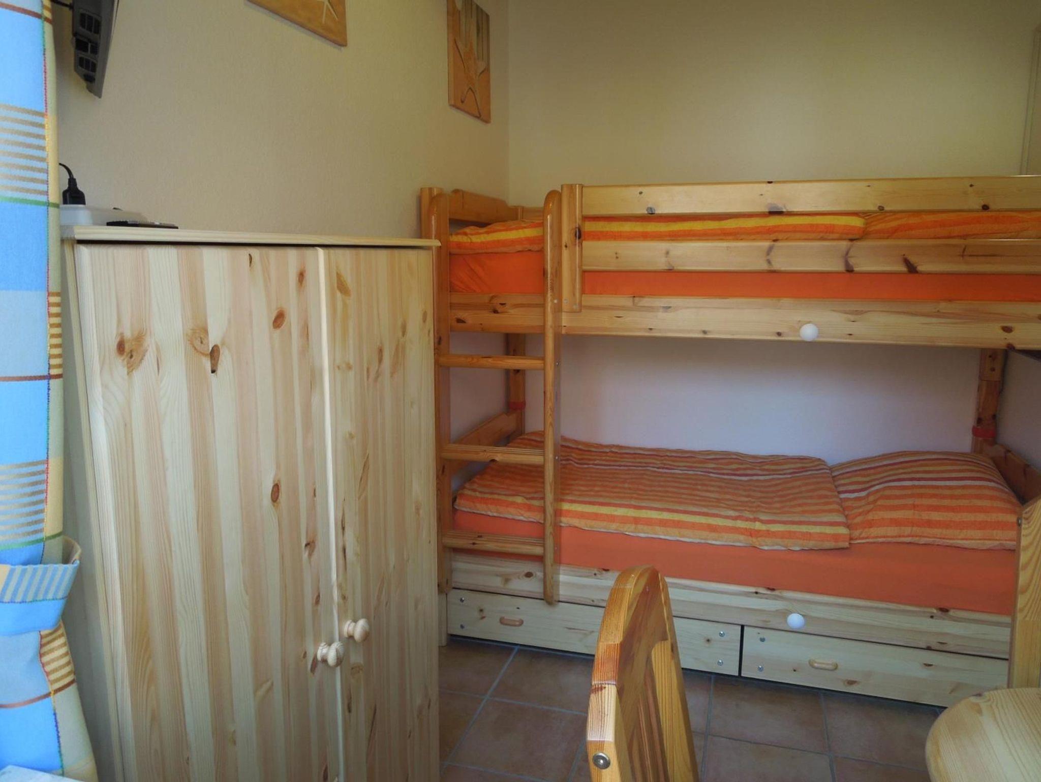 ein Schlafraum mit Etagenbett Erdgeschoß