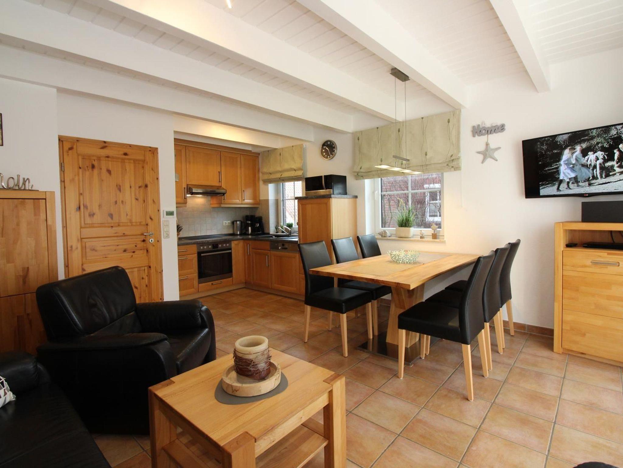 Es handelt sich hier um ein Eckhaus mit Terrasse (Südwestseite) und kleinem Garten direkt am Siel. Das Ferienhaus hat eine Wohnfläche von ca. 70 m² und ist für bis zu 6 Personen + Kinderreisebett ausgelegt.