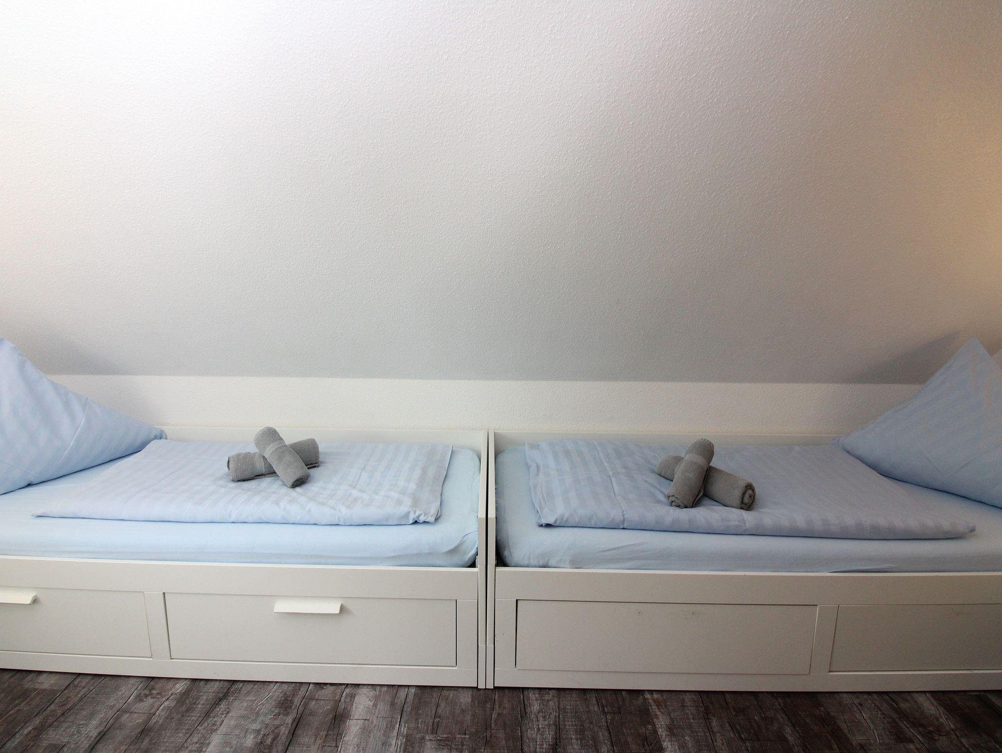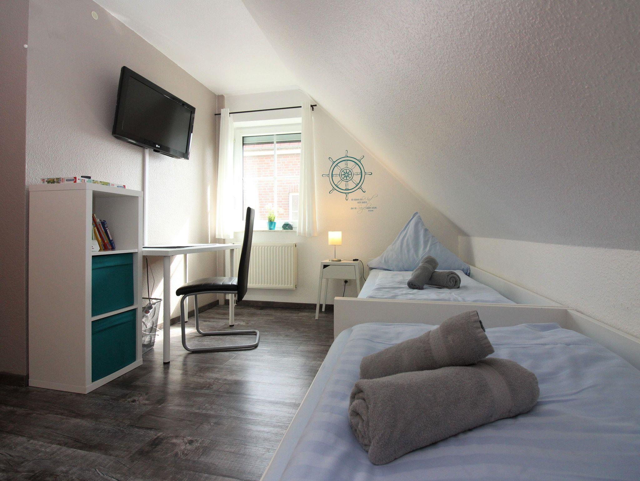 An allen Fenstern im 1. OG (zwei Schlafzimmer, ein Bad) sind Rollos und Insektenschutzgitter angebracht. Zwei Schlafzimmer sind mit TV-Geräte ausgestattet, in einem „Kinder“-Zimmer befinden sich CD-Radio sowie verschiedene Gesellschaftsspiele. Im gesamten Haus haben Sie kostenfreien Zugang zum WLAN. Ein kostenfreier Tresor befindet sich in einem der Schlafzimmer.