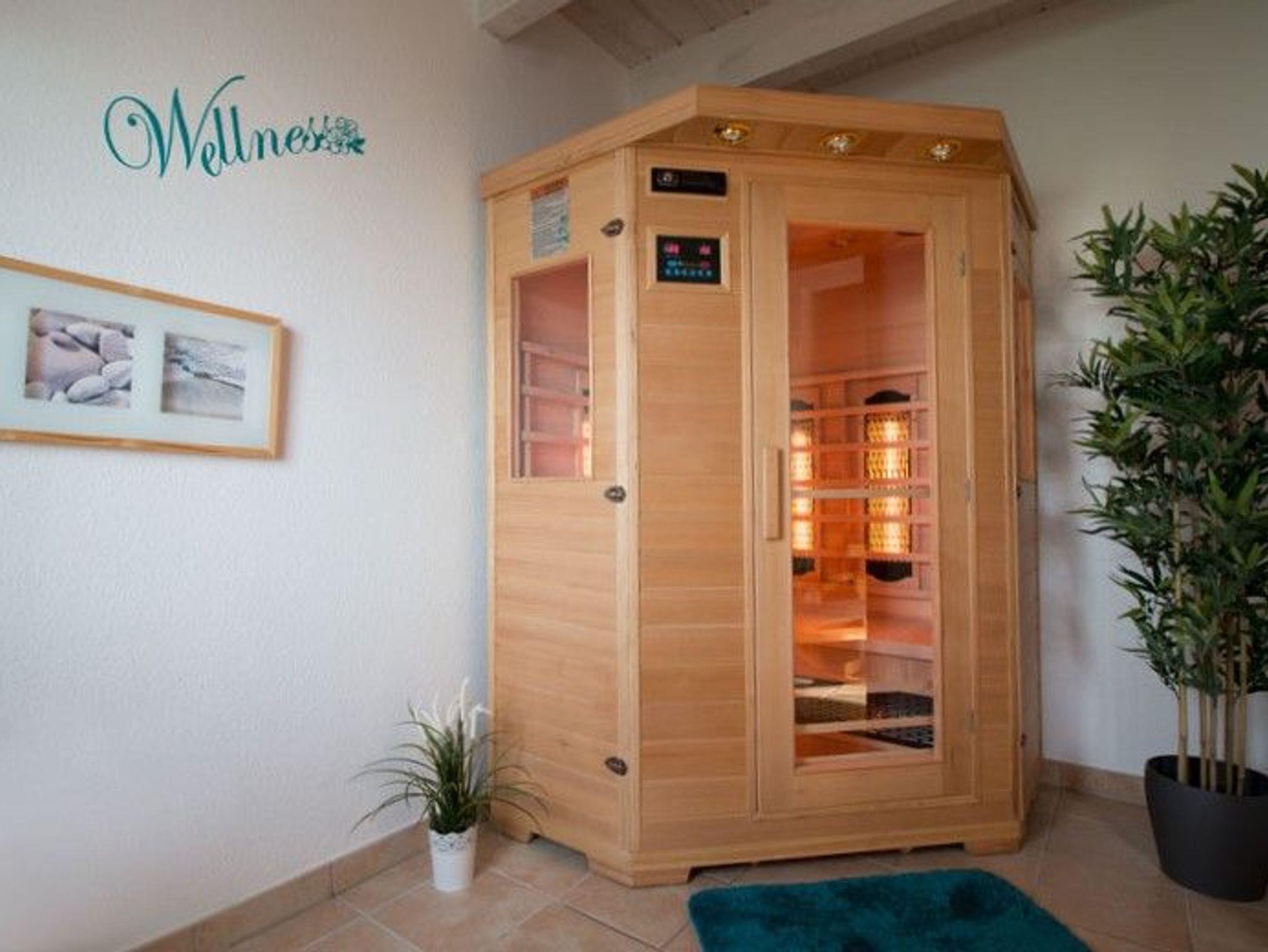 Auch steht Ihnen eine Infrarotsauna zur Verfügung. Nach nur 20 min Aufheizzeit können Sie diese 60 Grad warme Sauna (für bis zu 3 Personen geeignet) nach Herzenslust genießen.