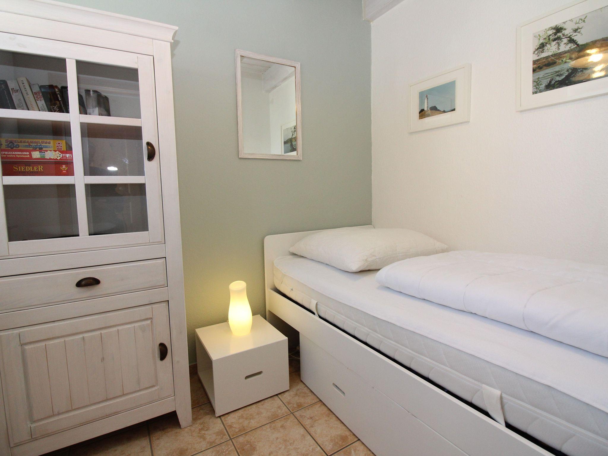 Ein kleines Zimmer mit Falttür lädt nicht nur zum Schlafen ein, sondern bietet Gelegenheit zum Lesen, oder als Rückzugsort. Spiele und Bücher für Groß und Klein stehen hier zur Verfügung. Das bequeme Bett ist für Senioren geeignet.