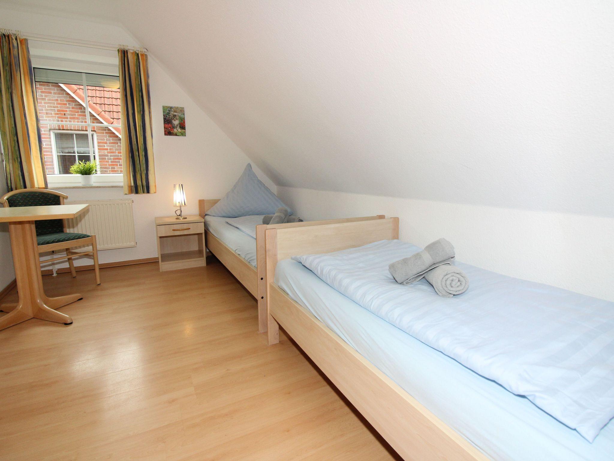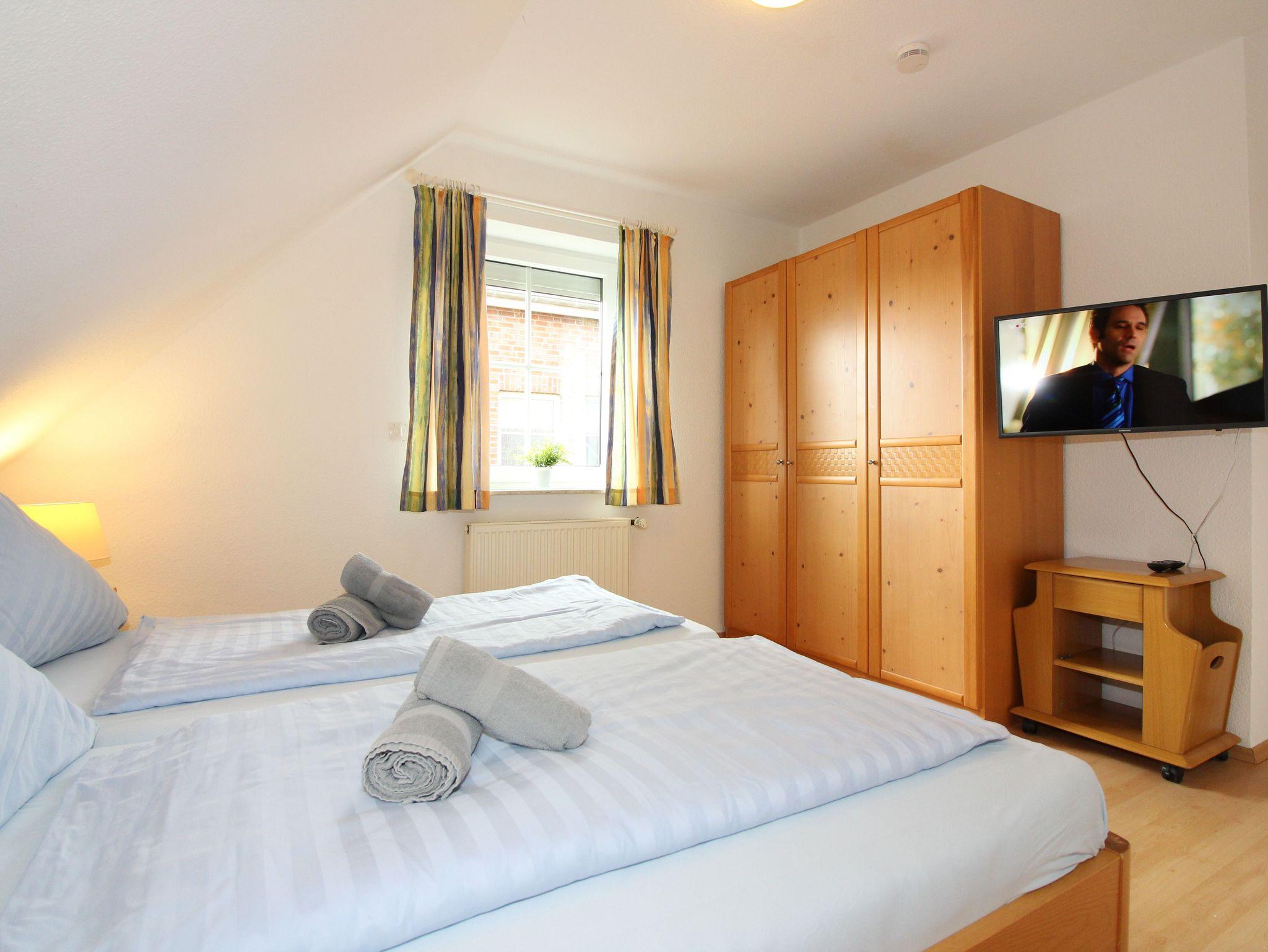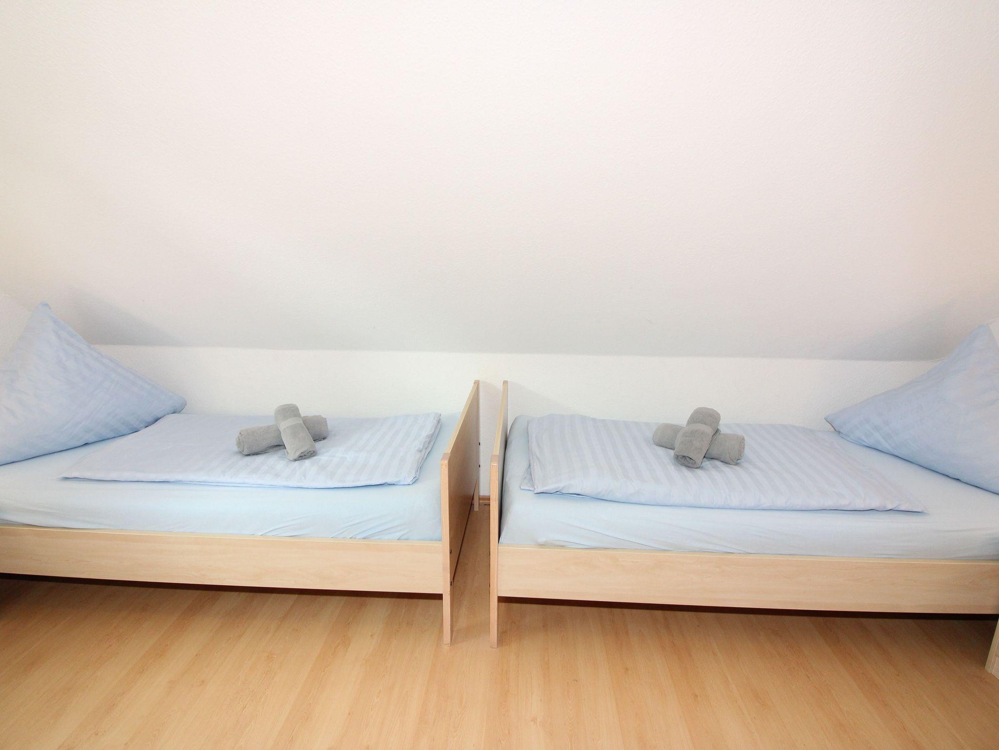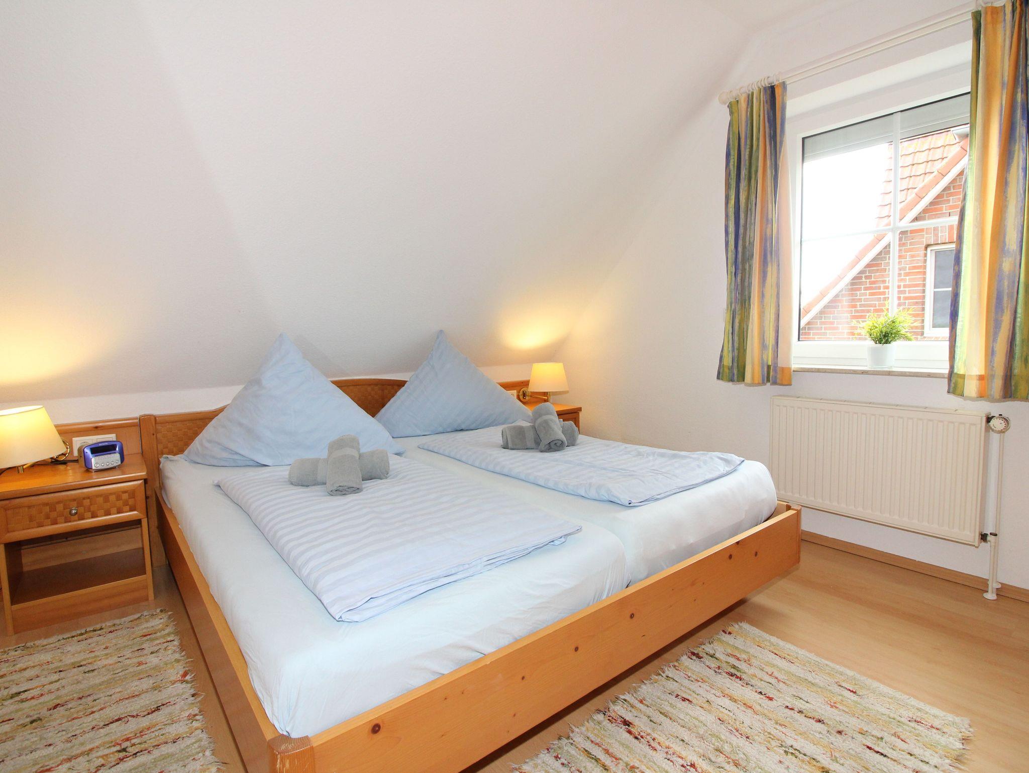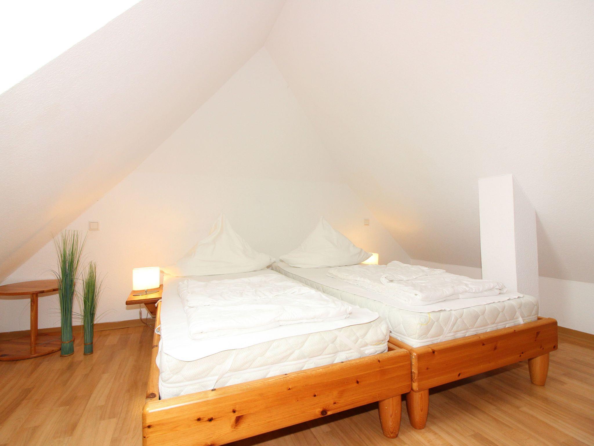 zwei getrennten Betten sowie ein Duschbad mit WC. Im ausgebauten Spitzboden ein weiteres Schlafzimmer