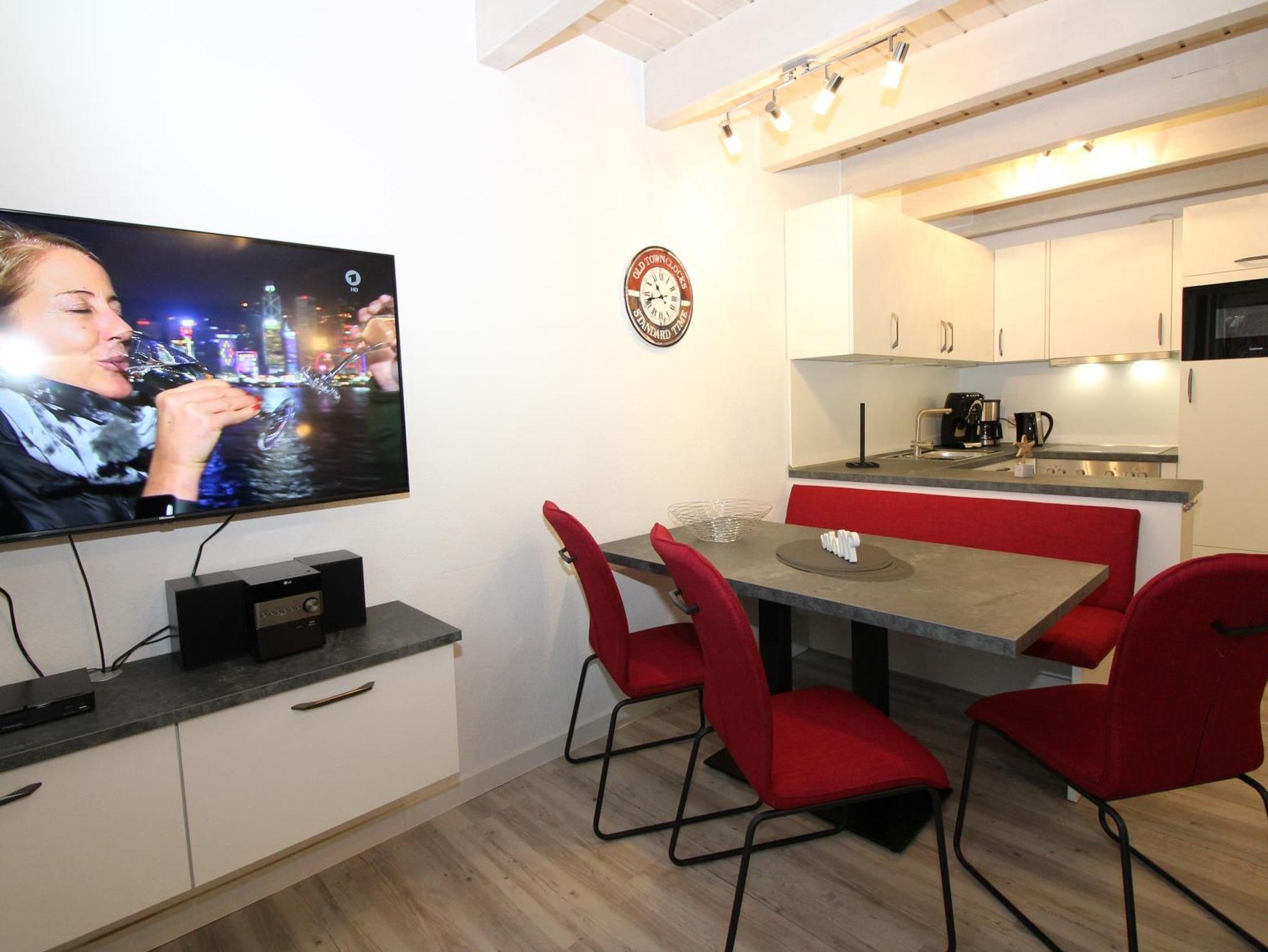 - komplett ausgestattete Küche mit Backofen, Geschirrspüler, Mikrowelle, Kaffeemaschine, Wasserkocher, Eierkocher, Toaster, Kühlschrank mit Tiefkühlfach, ausreichend Geschirr und Gläser sowie Kindergeschirr für unsere kleinen Gäste. Außerdem steht eine Tchibo Cafissimo-Maschine zur Verfügung.