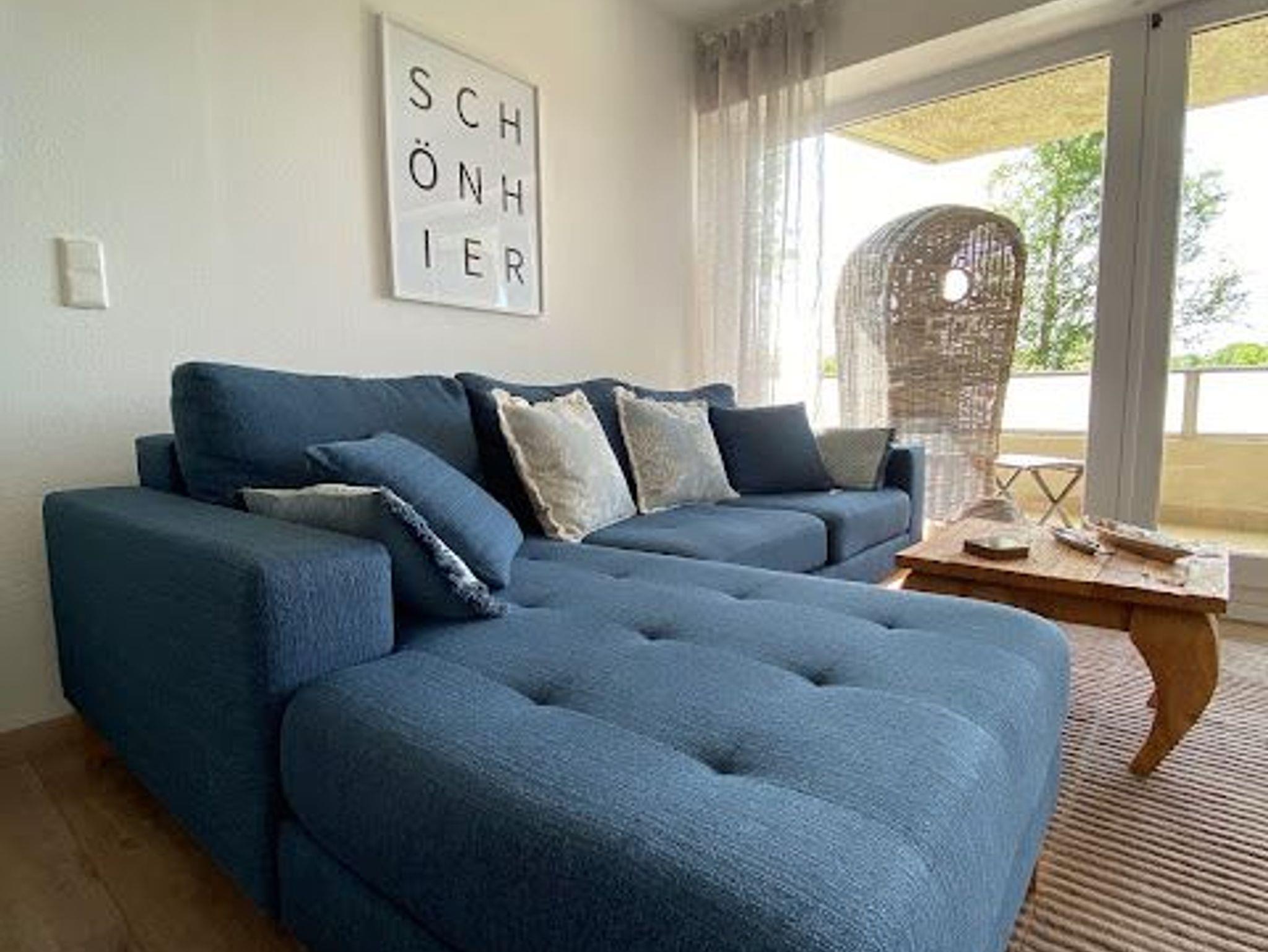 Die bequeme Couchgarnitur lädt zum Lesen und Entspannen ein. Auch ein Fernseher und ein Bluray-Player warten auf Sie. Des Weiteren verfügt unsere Wohnung über WLAN und elektrische Rollläden.