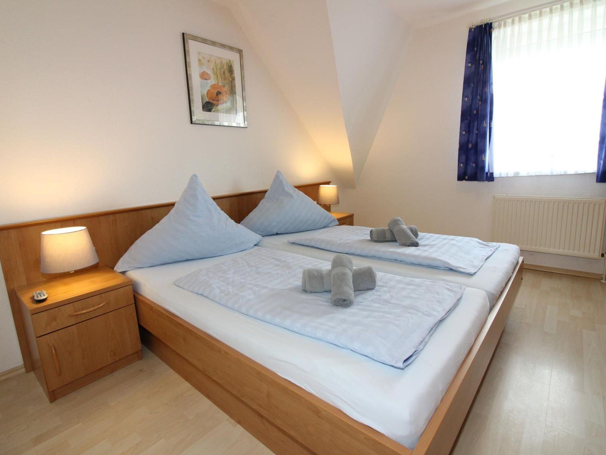 Sie wohnen in einem ruhig gelegenen Mittelhaus für bis zu 8 Personen. Das Ferienhaus verfügt über eine Wohnfläche von ca. 80 m² und drei Schlafzimmern. Ein Schlafzimmer mit Doppelbett, ein Schlafzimmer mit getrennten Betten, zusätzlich im Spitzboden zwei Einzelbetten. Wohn-/Schlafraum mit bequemer Doppelbettcouch, separater Essplatz, Kabel-TV, Stereoanlage, Telefon-Anschluss, voll ausgestattete Einbauküche mit Mikrowelle und Geschirrspüler, Dusche/ WC im Erd- und Obergeschoss, Terrasse. Der Autostellplatz liegt nur wenige Meter entfernt.