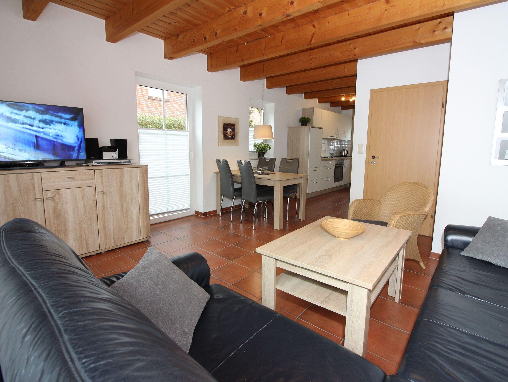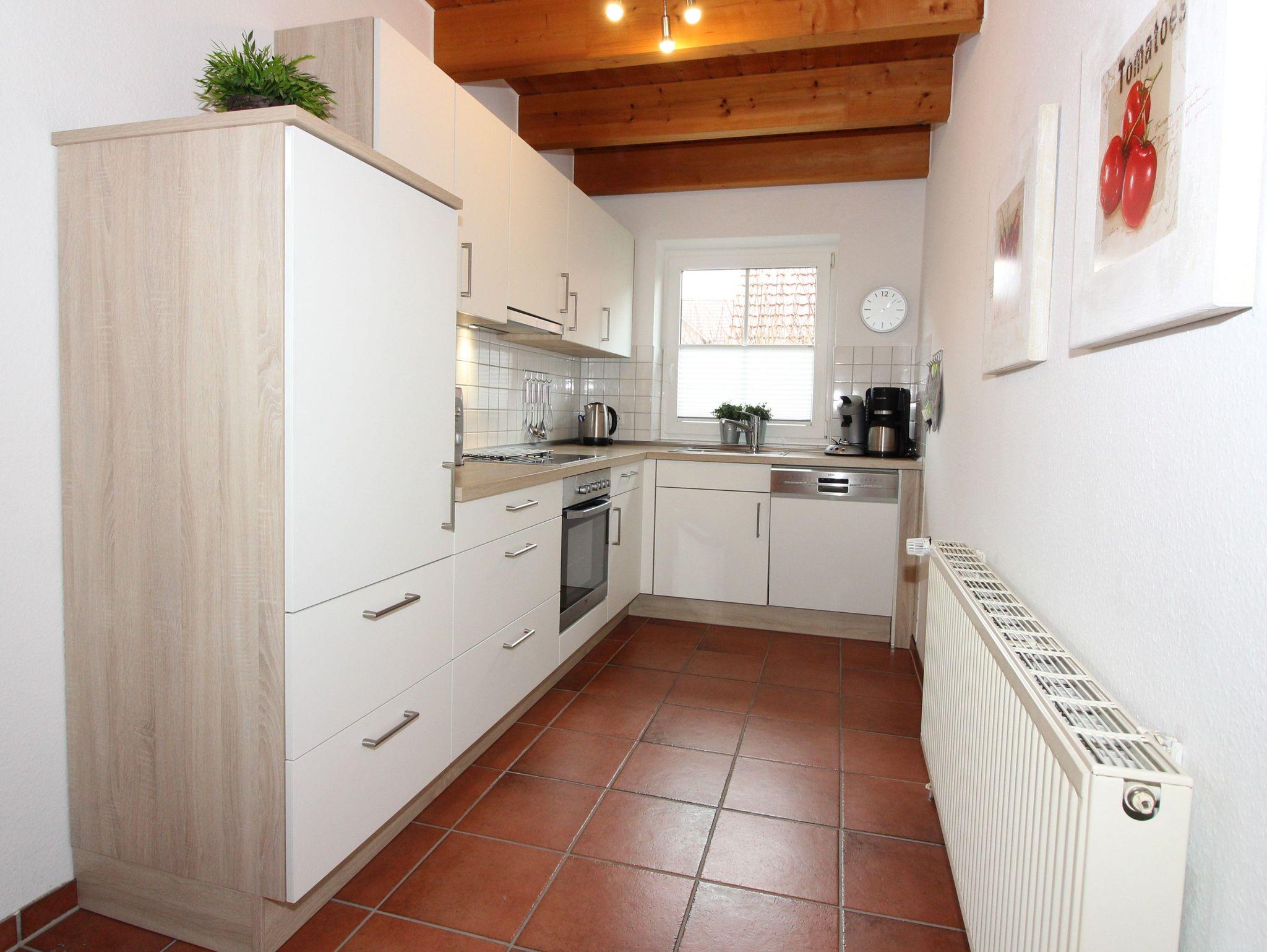 Im gemütlichen Wohn-/Essbereich finden bis zu 6 Personen Platz. Eine nagelneue komfortable, ausziehbare Schlafcouch und ein bequemer Loom Chair laden zum Relaxen ein. Das Mobiliar im EG sowie die Küche wurden erneuert (Stand 2025). Mit einem großen Flachbildschirm, einer Spielesammlung, Kinderbüchern, einem DVD Player sowie einer Auswahl an DVDs ist für Unterhaltung für Groß und Klein perfekt gesorgt. Alle Fußböden sind gefliest. Die voll ausgestattete Küche lässt mit Geschirrspüler, Mikrowelle, Herd und Backofen, Kühl-Gefrierkombination, Tripp-Trapp-Stuhl, Kinderhochstuhl, Filter-Kaffeemaschine sowie einer Senseo Pad Maschine keine Wünsche offen.