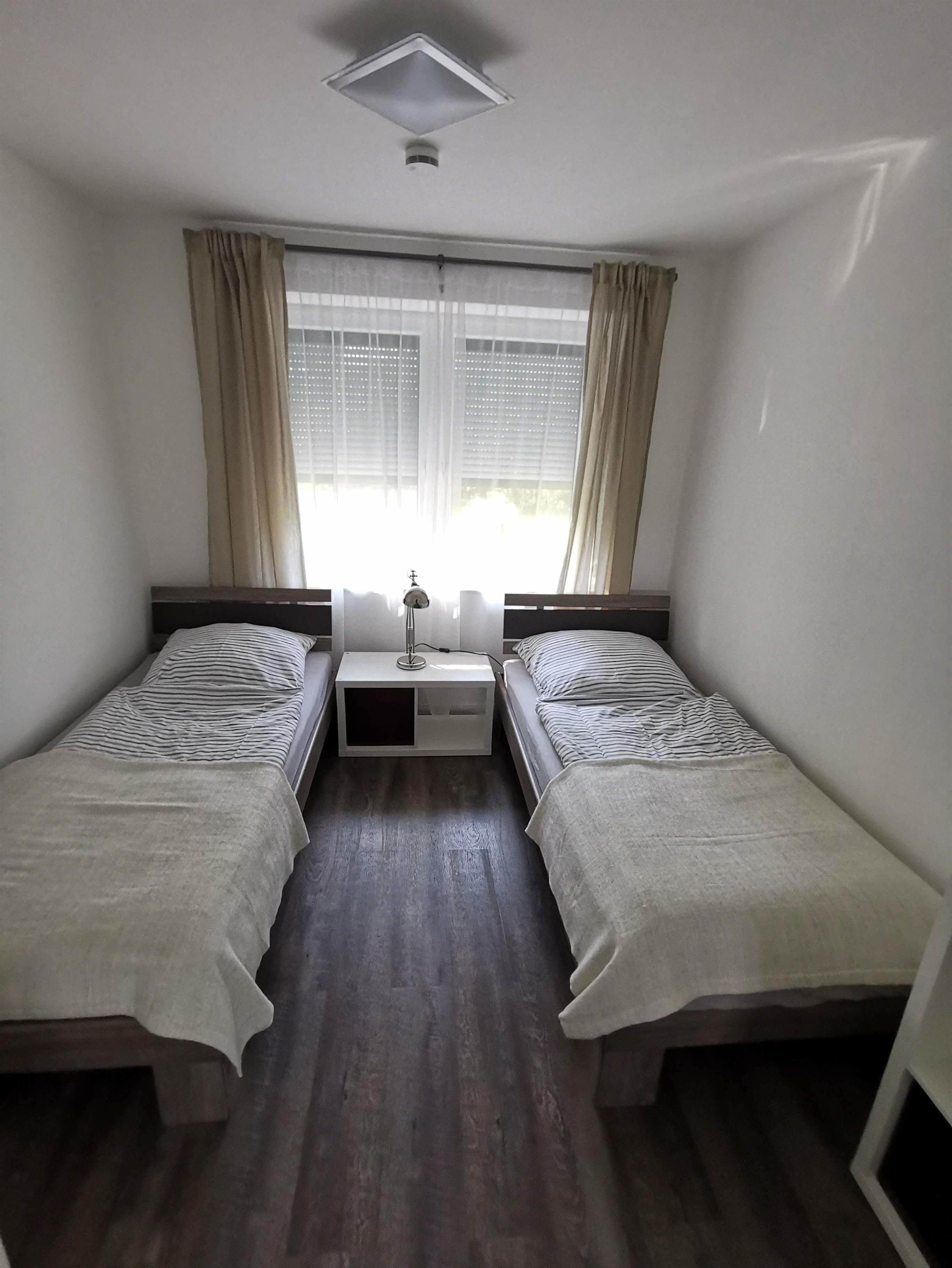 Im kleineren zweiten Schlafraum befinden sich zwei einzelne Betten (0,90m x 2,00m)
