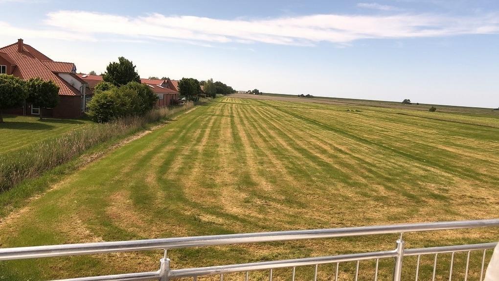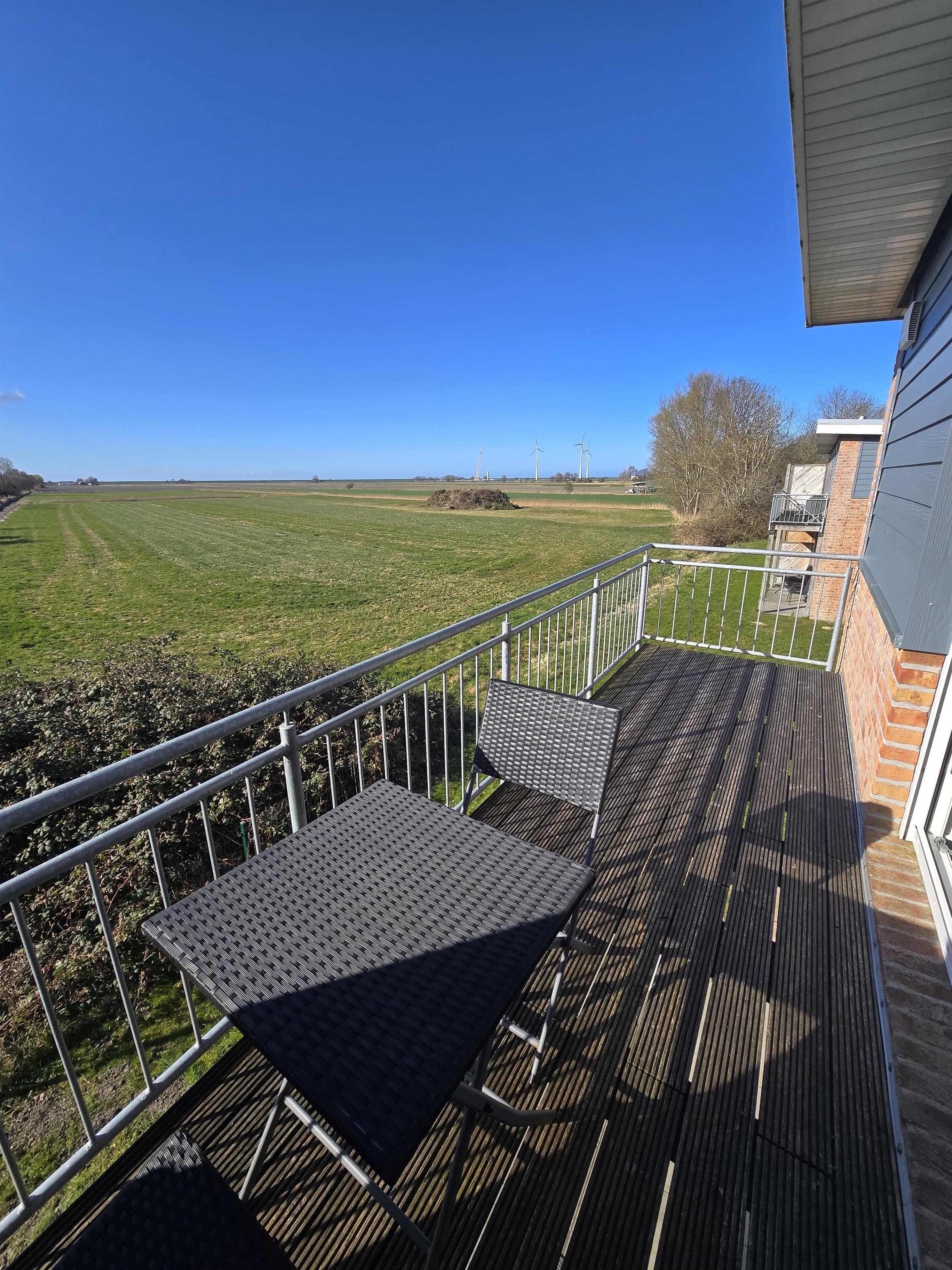 Modernes Ferienhaus mit Sauna, Balkon und Blick auf den Deich in Butjadingen.