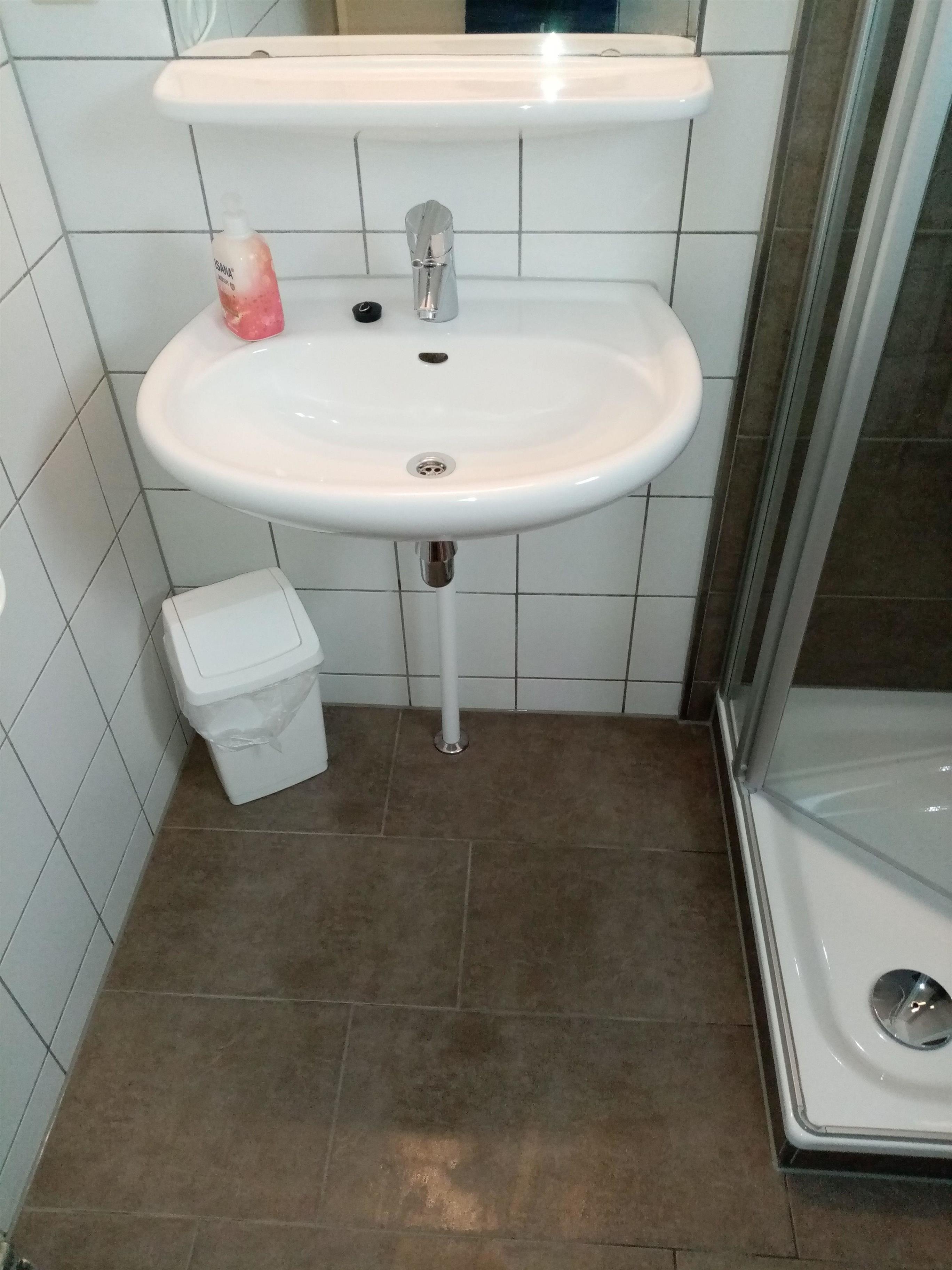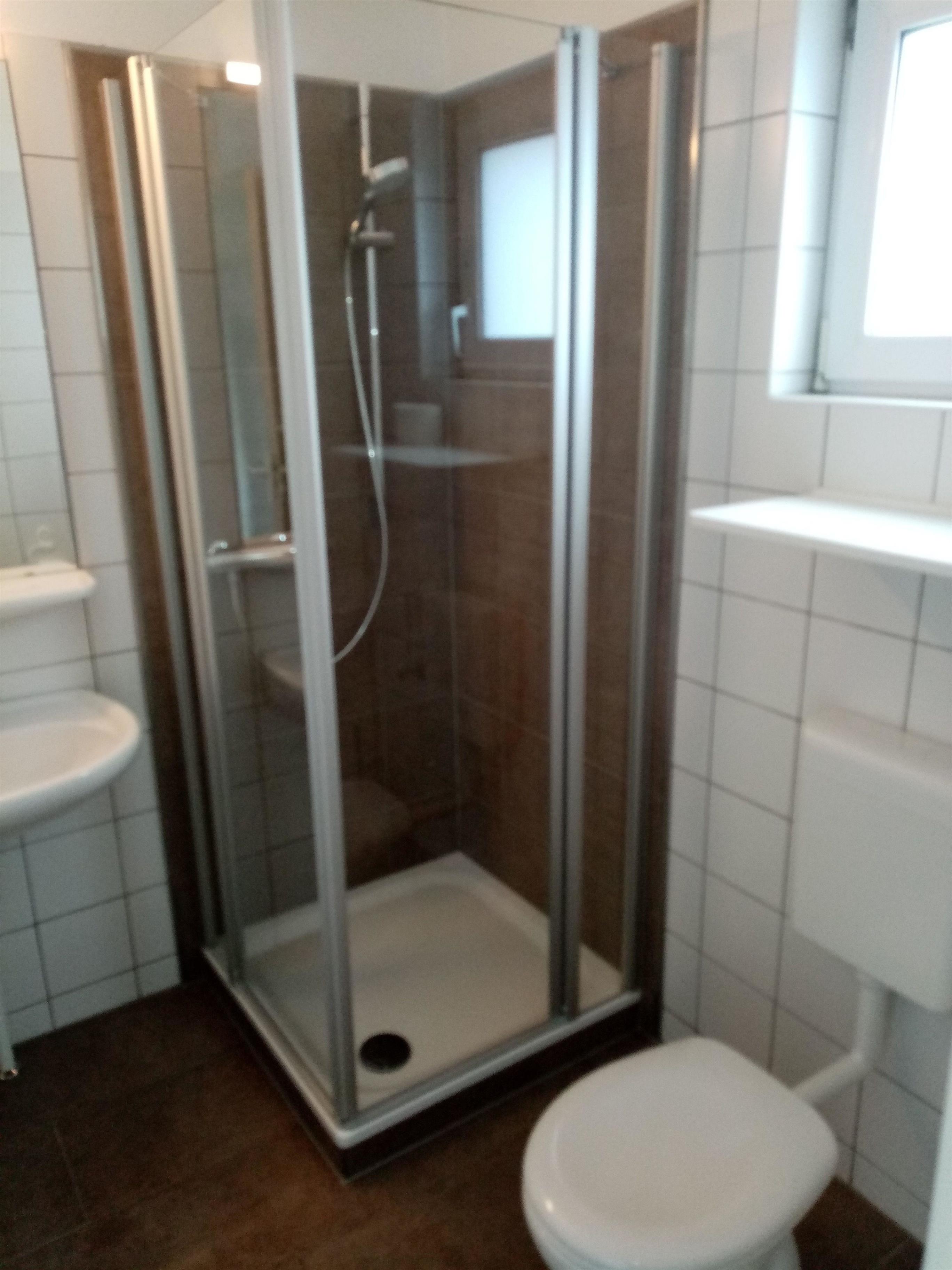 Im Erdgeschoss ist weiterhin das Bad mit Toilette, Waschbecken und Dusche.