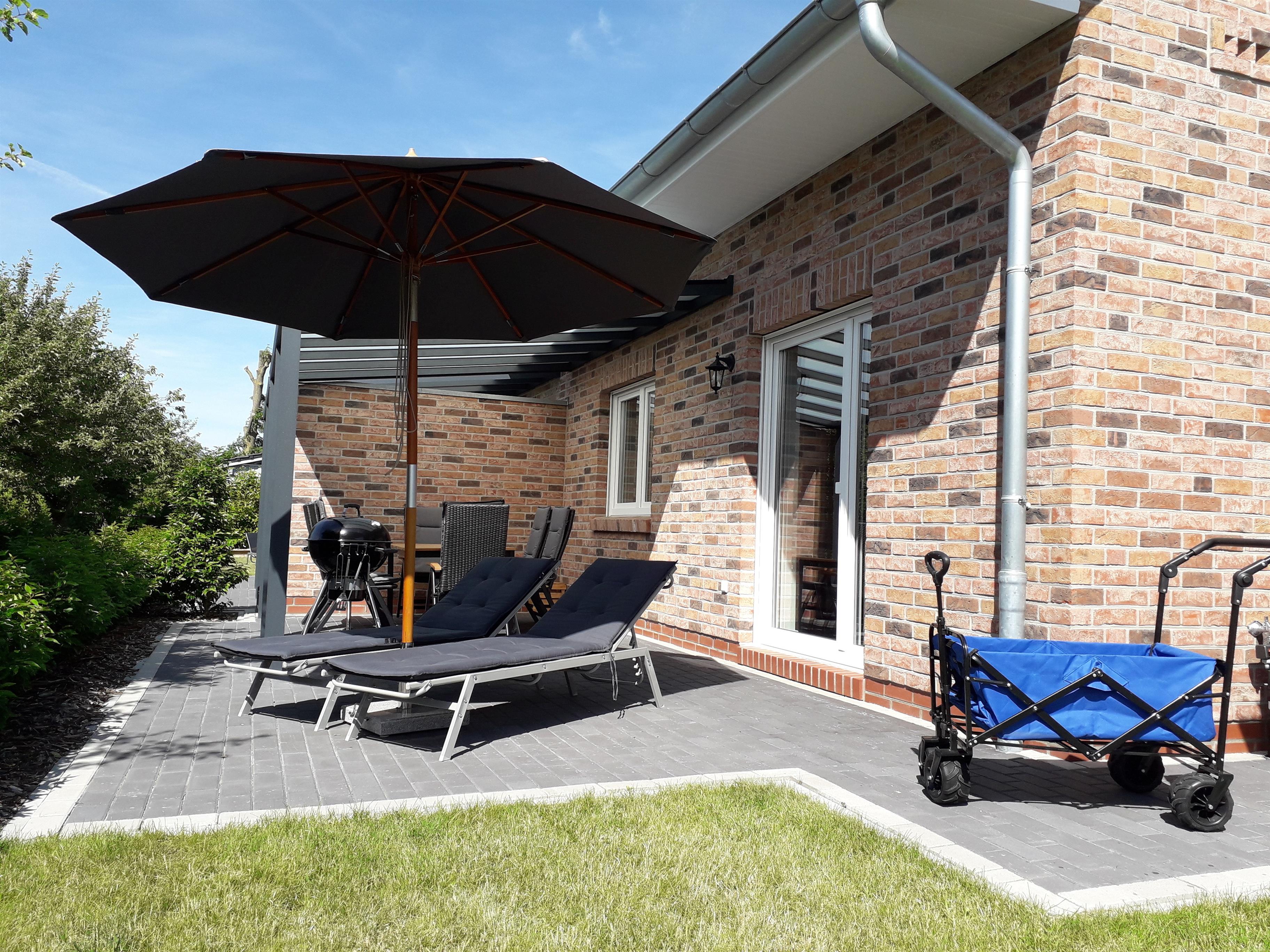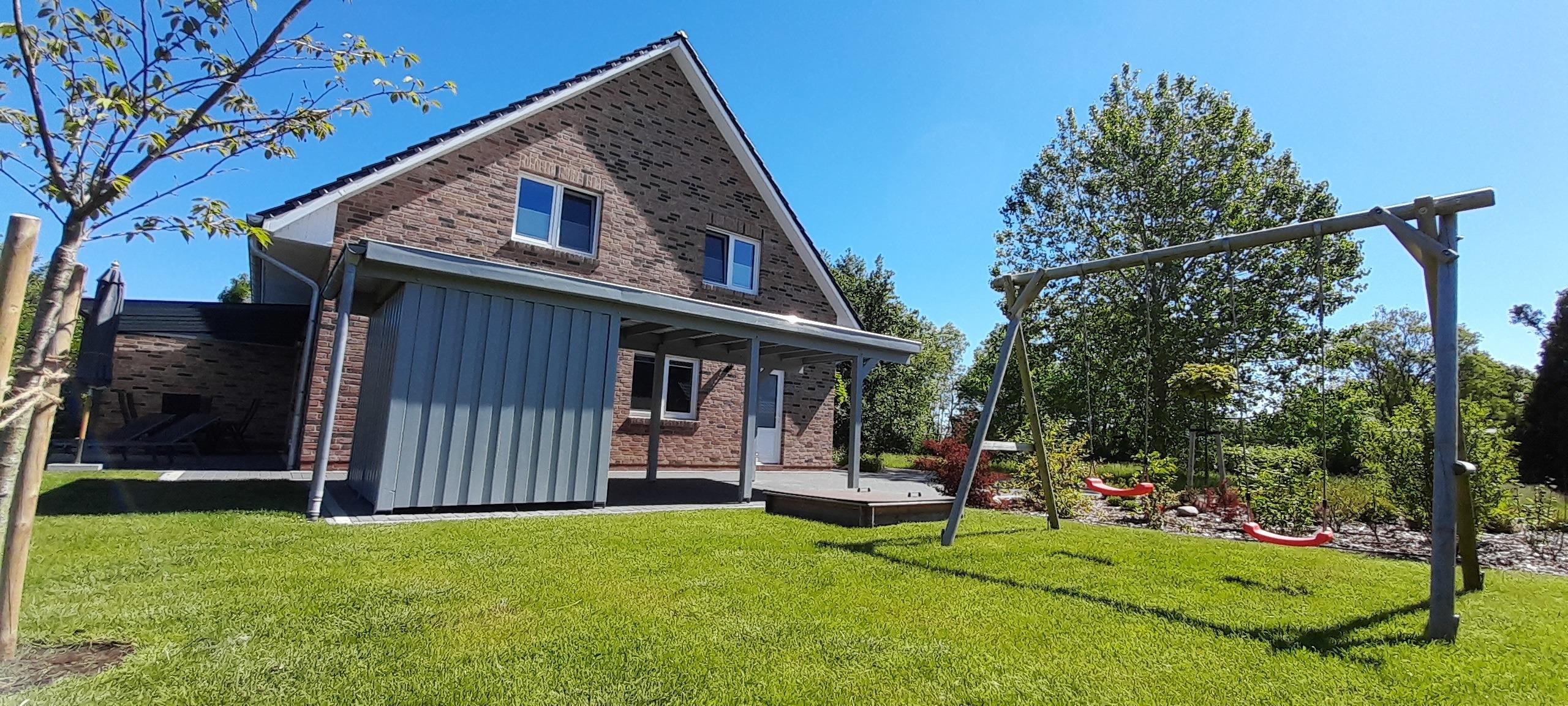 Modernes Ferienhaus in Butjadingen mit Garten, Terrasse, Spielplatz und moderner Ausstattung.