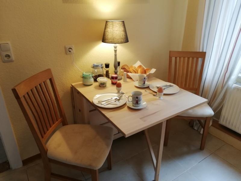Der große Wohnraum mit großen Esstisch bietet genug Platz um kulinarische Leckereien in gemütlicher Atmosphäre zu Speisen. Oder auch einen geselligen schöne Spieleabende zu verbringen.