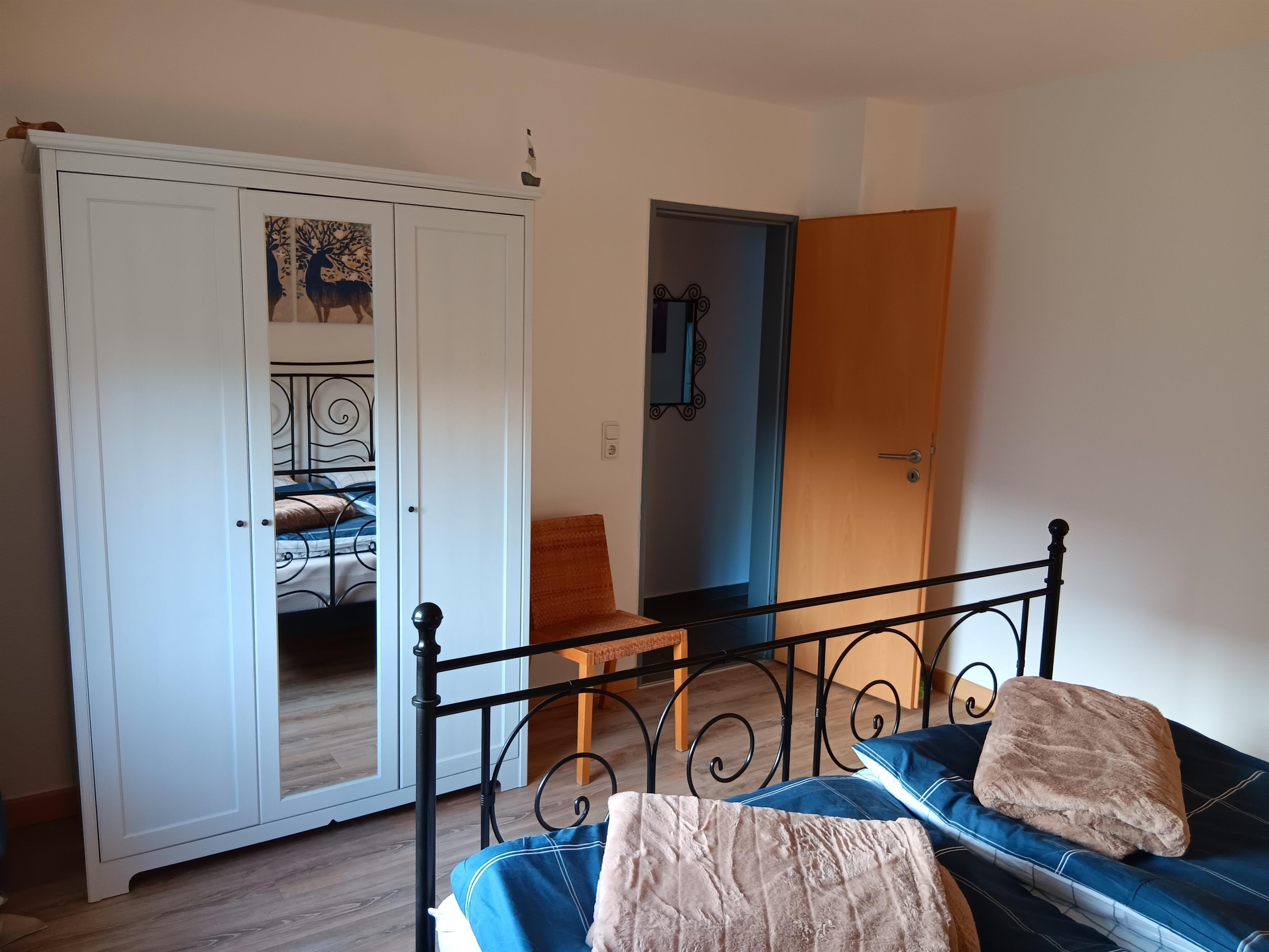 Die Ferienwohnung bietet 3 Schlafplätze, ein großes Doppelbett 180 x 200 cm und eine bequeme Schlafcouch mit Topper im Wohnzimmer. Für die ganz kleinen Gäste kann auf Wunsch ein Kinderbett und Kinderstuhl zur Verfügung gestellt werden.