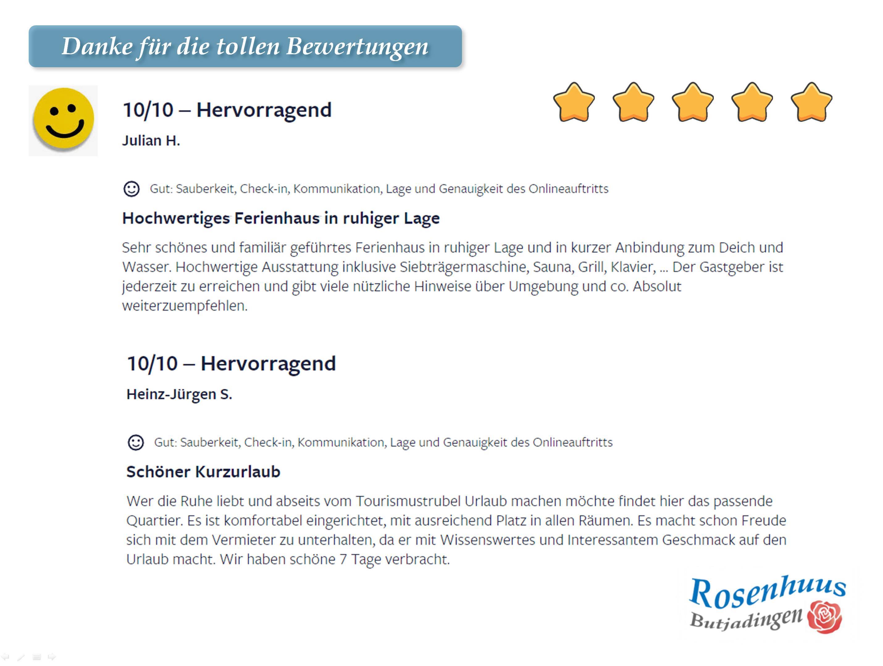 Bitte beachten Sie, dass das Feriendomizil Rosenhuus ein Nichtraucherhaus ist und auch das Mitbringen von Haustieren ist leider nicht gestattet. Somit wird gewährleistet, dass das Haus auch für Menschen mit Allergien ein optimaler Erholungsort ist.