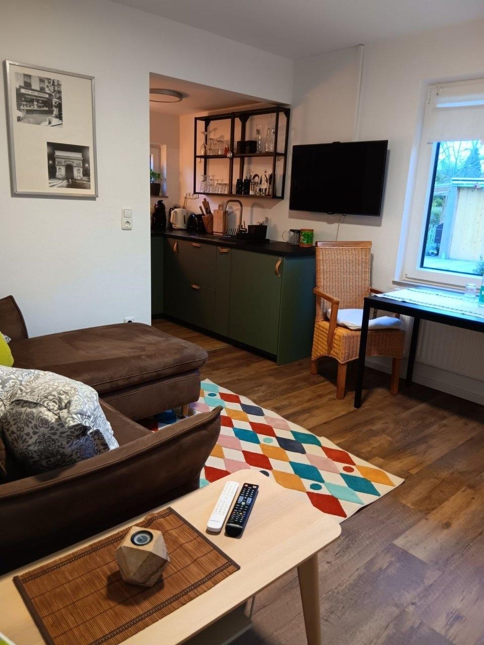 Schön, dass Sie sich weiter über unser Apartment "Smutje" informieren möchten.Das Apartment "Smutje" ist perfekt für 1-2 Erwachsene mit maximal einem Kleinkind geeignet (auf Wunsch mit Babybett) und befindet sich im Erdgeschoss unseres Ferienhauses. Somit ist der "Smutje" auch für Personen mit Kinderwägen passend. Neben dem eigenen Badezimmer gehören ein Wohnzimmer mit offener Küche und ein großes Schlafzimmer zu dieser Wohnung.Die Küche ist mit einem Backofen, einem Kühlschrank, einem Induktionskochfeld und einer Kaffeemaschine gut ausgestattet. Eine Grundausstattung mit Besteck, Geschirr, Töpfen, Pfannen und Schüsseln ist ebenfalls in der Küche vorhanden. Außerdem sind die wichtigsten Gewürze immer griffbereit.Das Wohnzimmer verfügt über eine elektrisch ausfahrbare Relaxcocu der Marke Musterring und einen Smart-TV mit 101cm Diagonale. So steht einem gemütlichen Abend nichts mehr im Wege.Im Schlafzimmer finden Sie ein 180cm x 200cm großes Bett und einen großen Kleiderschrank mit ausreichend Platz für die Kleidung während Ihres gesamten Aufenthaltes.Haustiere:Haustiere sind grundsätzlich erlaubt. Wir bitten Sie jedoch, uns dies vor Ihrer Anreise mitzuteilen. Zudem fallen für Haustiere zusätzliche Gebühren an (einmalig 50€ pro Aufenthalt).Gegen Gebühr: Bettwäsche und Handtuchset (Badetuch, Handtuch, Fußmatte) | In einem separaten Waschraum können Sie außerdem gegen eine Gebühr eine Waschmaschine und einen Trockner nutzen. Pro Aufenthalt fällt eine Endreinigungsgebühr von 60€ an. Zudem ist vor Ort eine Kaution in Bar zu hinterlegen. Kurtaxe:Zusätzlich zum Mietpreis kommt noch die Kurtaxe hinzu. Diese beträgt im Zeitraum vom 01.03. bis 31.10 für Erwachsene 3,20 Euro pro Tag und Erwachsener, und für Kinder vom 3. bis zum 13. Lebensjahr 1,95 Euro pro Tag und Kind.Im Zeitraum vom 01.11 bis 31.02 beträgt die Kurtaxe für Erwachsene 1,50 Euro pro Tag und Erwachsener, und für Kinder vom 3 bis zum 13. Lebensjahr 0,85 Euro pro Tag und Kind.Die Kurtaxe entrichten Sie in der Unterkunft.