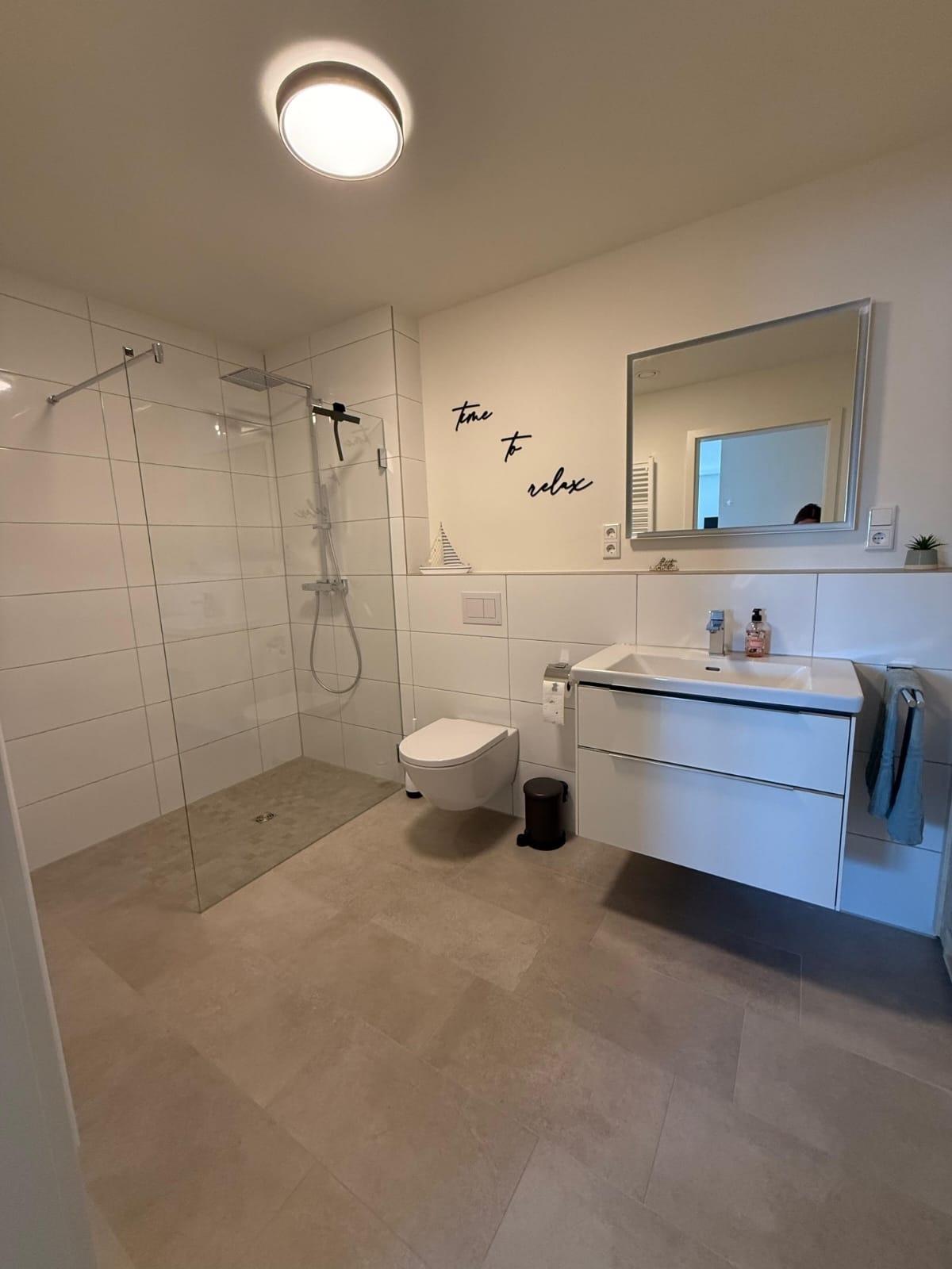 Mit 2 Schlafzimmern, welche alle mit einem Boxspringbett (Matratzengröße für Bettlaken 180cm x 200cm) ausgestattet sind, finden bis zu 4 Erwachsene gemütlich Platz. Ein Reisebett, sowie ein Hochstuhl für kleine Gäste, ist vorhanden. Das Wohnzimmer und beide Schlafzimmer sind mit einem Smart TV ausgestattet. Eine komplett bestückte Küche, eine Waschmaschine, ein Trockner und viele zusätzliche Extras befinden sich in der 93m² großen Unterkunft.