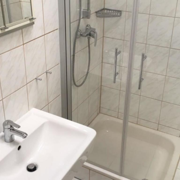 Das Badezimmer mit Tageslicht-Dachfenster wurde komplett neu gestaltet und ist mit einer Dusche, einem Waschbecken und einem WC ausgestattet.