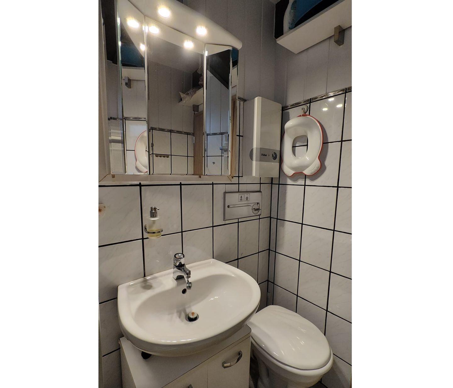 Ein modernes Badezimmer mit Dusche (mit Wanne), Kosmetikspiegel und Haartrockner rundet den Wohnkomfort ab. Des Weiteren profitieren Sie von einer eigenen Waschmaschine und einem Trockner zur Alleinnutzung, Bügeleisen sowie Bügelbrett, sodass auch längere Aufenthalte komfortabel gestaltet werden können.