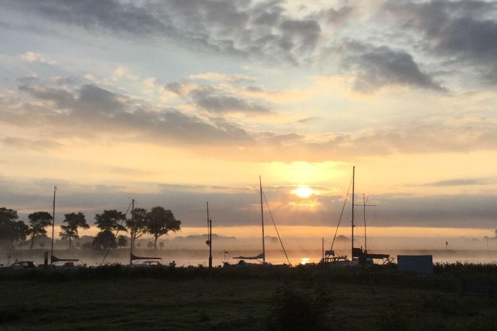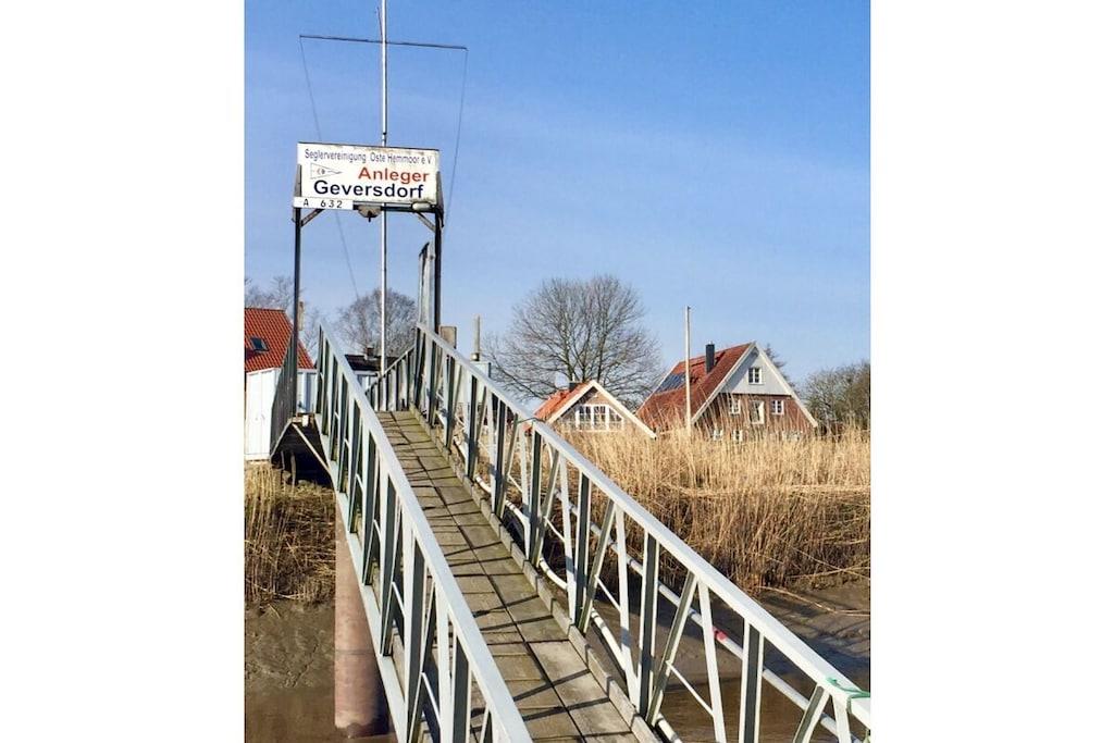Komfortables Ferienhaus „Am Deich“ direkt an der Oste mit Kamin, Terrasse und traumhaftem Wasserblick.