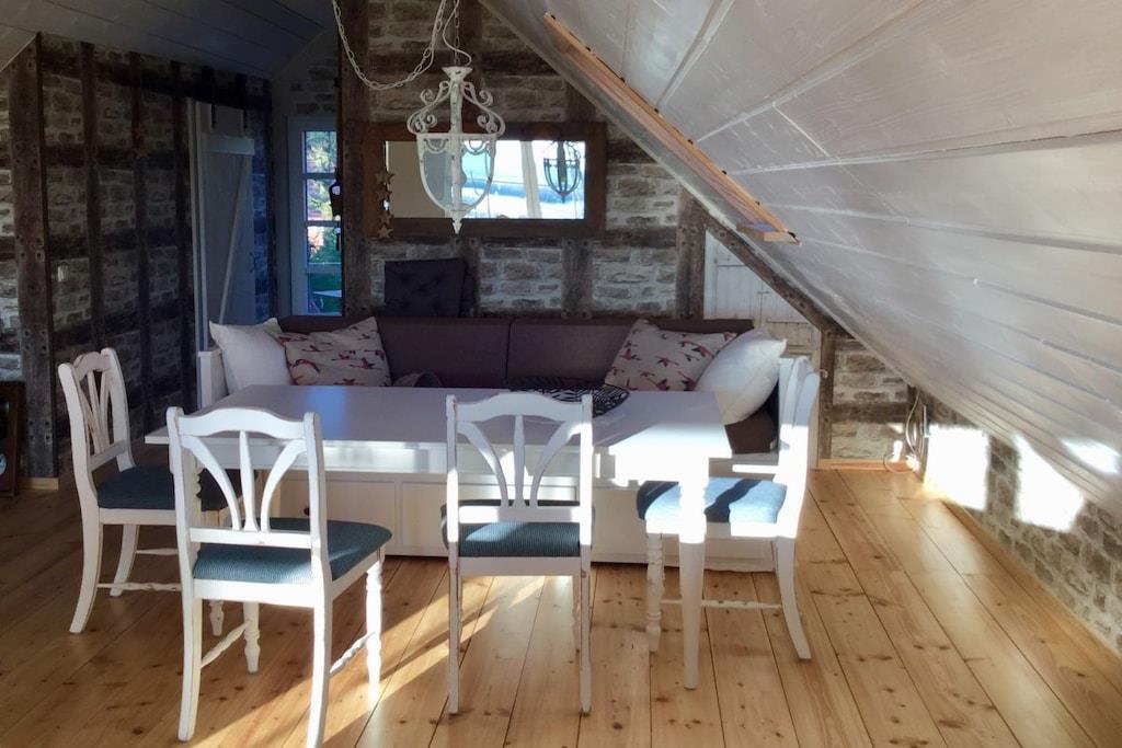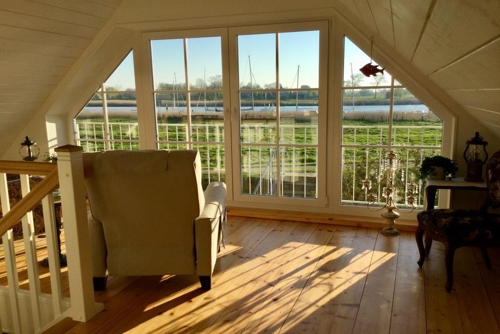 Unser Ferienhaus „Am Deich“ liegt direkt am Ufer der Oste, einem der schönsten Nebenflüsse der Elbe. Es bietet auf ca. 100 m² und 2 Etagen Platz für einen ruhigen, entspannten Urlaub am Wasser für 3 Personen (weitere 2 Personen auf Anfrage möglich). Im Erdgeschoss befindet sich die Landhausküche, ein großer Ess- und Wohnraum mit einem schönen Kaminofen, ein Schafzimmer für 2 Personen und ein Badezimmer mit barrierefreier Dusche. Eine Terrasse mit Südlage ist direkt vom Wohnzimmer aus zu erreichen. Im lichtdurchfluteten Obergeschoss lädt das große Panoramafenster, mit traumhaftem Blick auf das Wasser, zum Verweilen ein. Beim Klönschnack zur Teestunde sitzt man auch gerne länger und vergisst die Zeit. Für einen weiteren Gast steht hier ein kleiner Schlafraum (unsere Kajüte) und ein schönes Duschbad zur Verfügung (weitere 2 Personen auf Anfrage). Auch das Obergeschoss verfügt über eine schöne Terrasse.