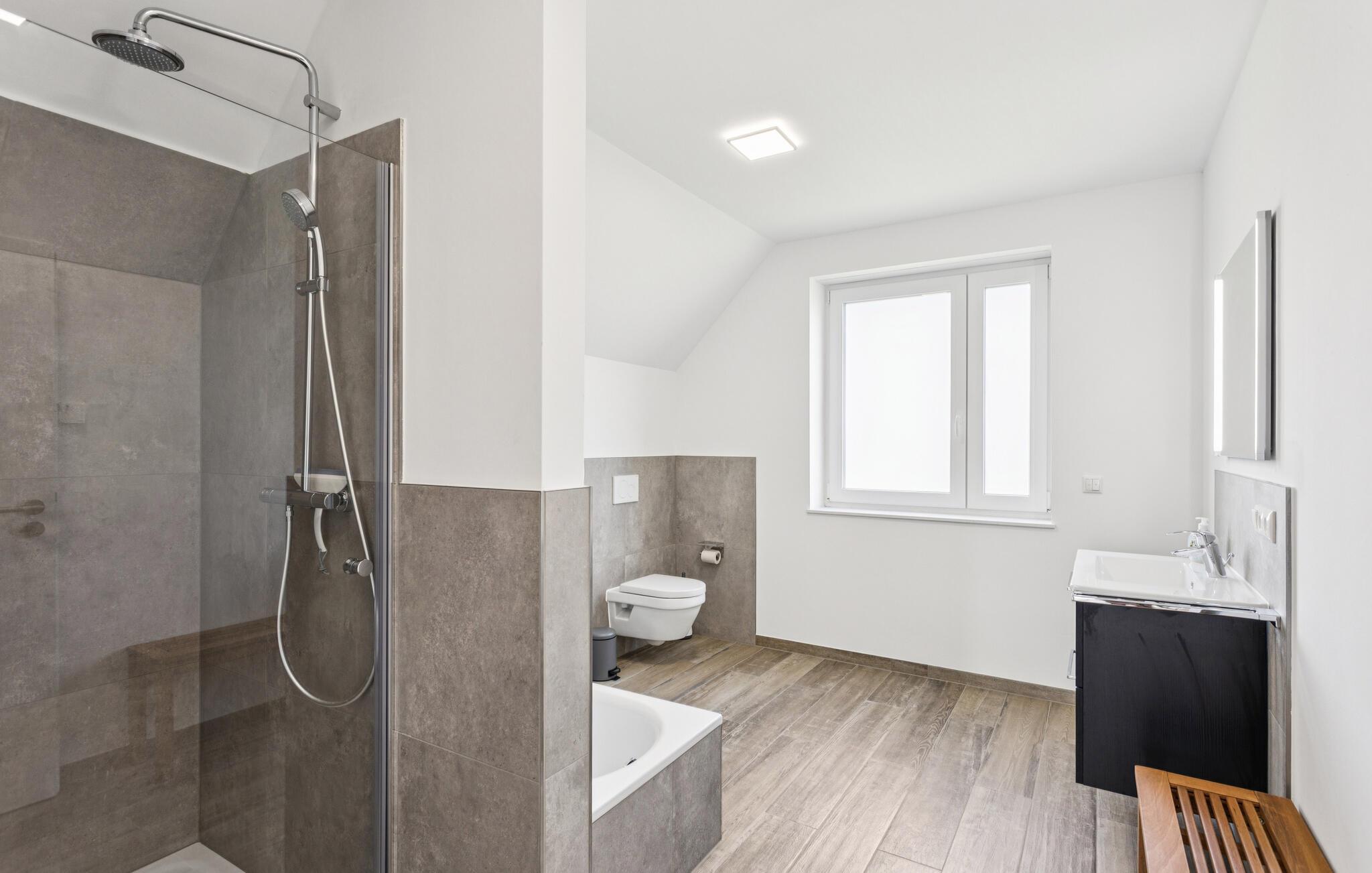 - WC mit warmem und kaltem Wasser, Dusche und Badewanne