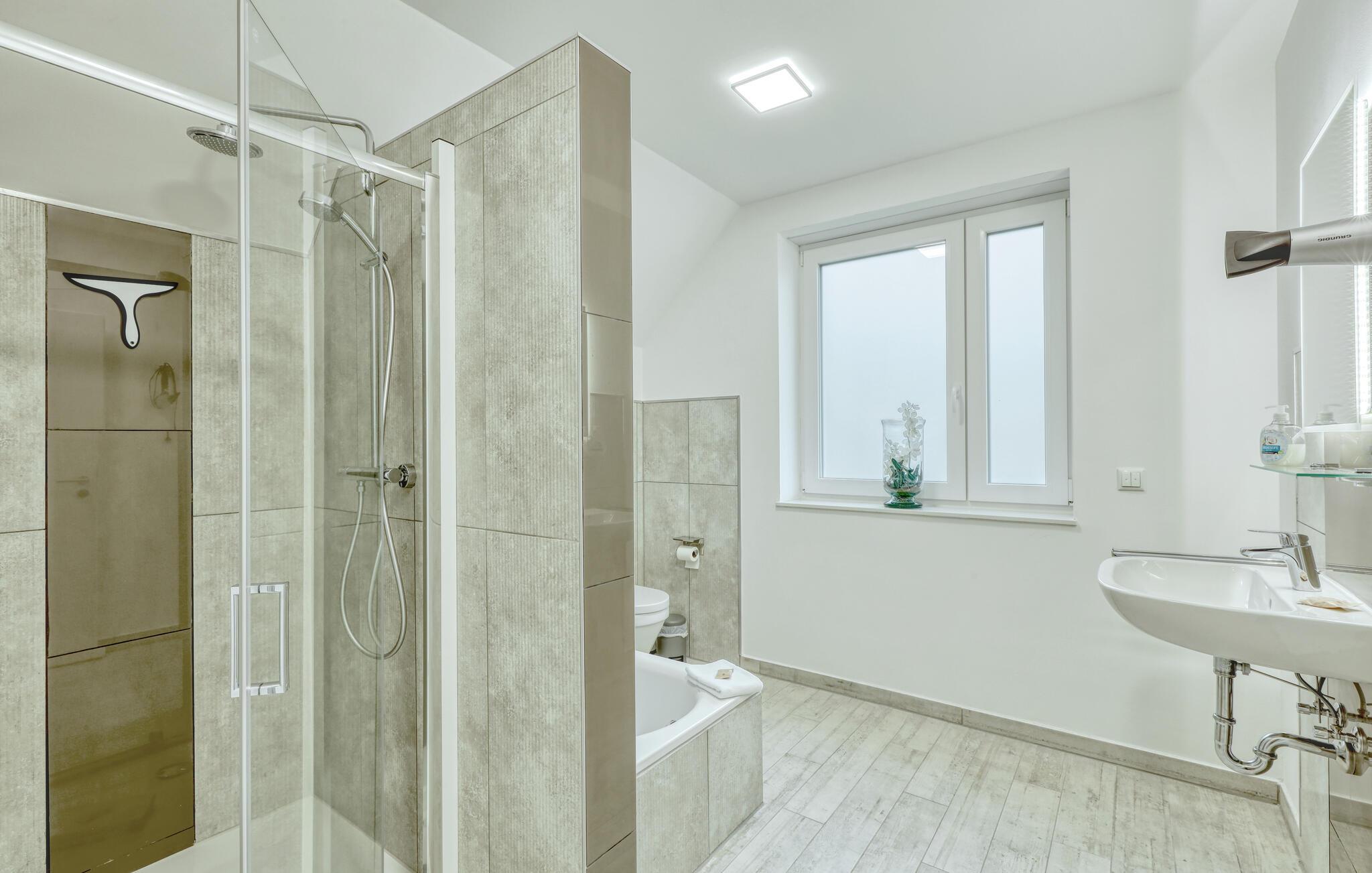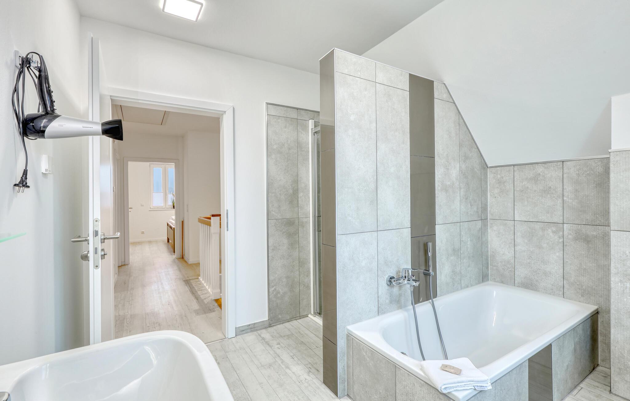 Badezimmer (nr. 2) - WC. Warmes und kaltes Wasser. Dusche und Badewanne
