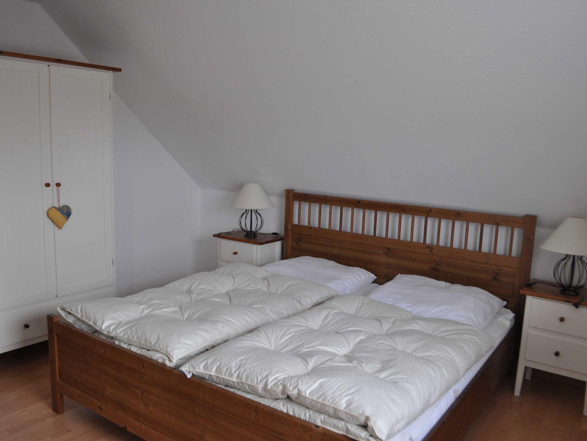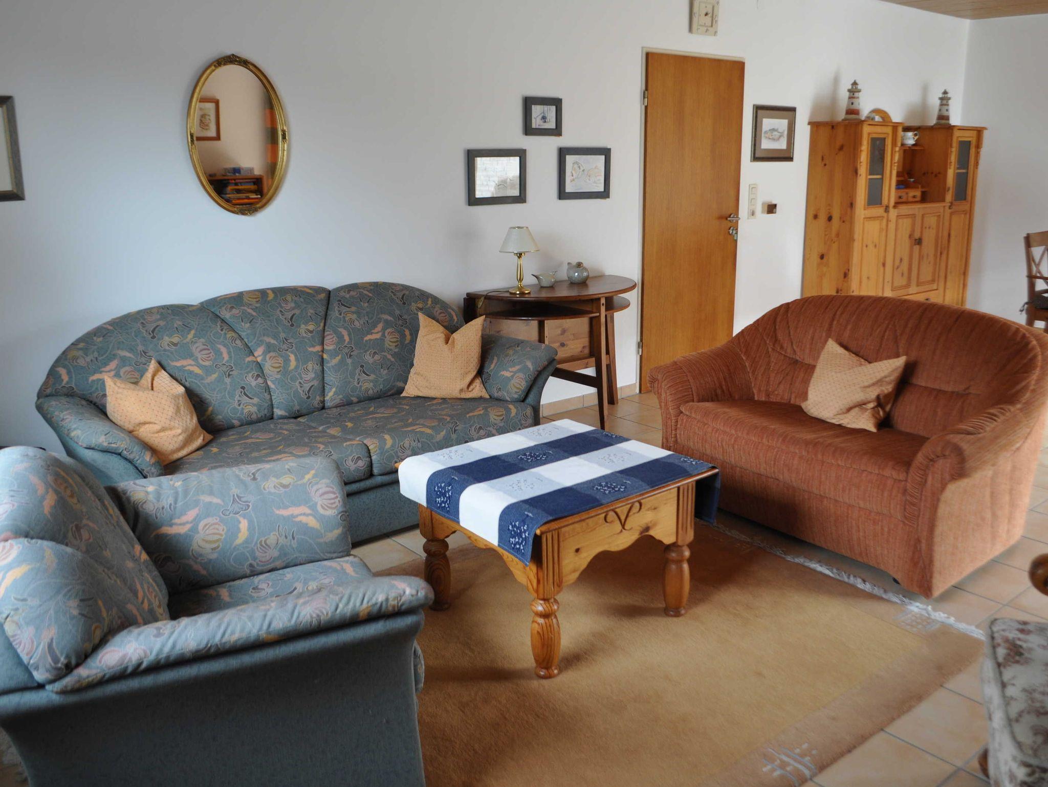 Im Erdgeschoss befinden sich ein großzügiger und gemütlich eingerichteter Wohnraum mit Essecke und Zugang zu Terrasse und Garten. Eine separate Küche mit neuwertigen Einbaugeräten und kleinem Essbereich, ein Gäste-WC, sowie ein Hauswirtschaftsraum. Vom Flur führt eine Steintreppe ins Obergeschoss, wo sich ein Schlafzimmer mit einem Doppelbett, ein Schlafzimmer mit zwei Einzelbetten und ein modernes Duschbad mit WC und Bidet befinden. Die Doppelhaushälfte bietet mit über 90m² ausreichend Platz für 4 Personen und ein Baby/Kleinkind. WLAN steht Ihnen kostenlos zur Verfügung.