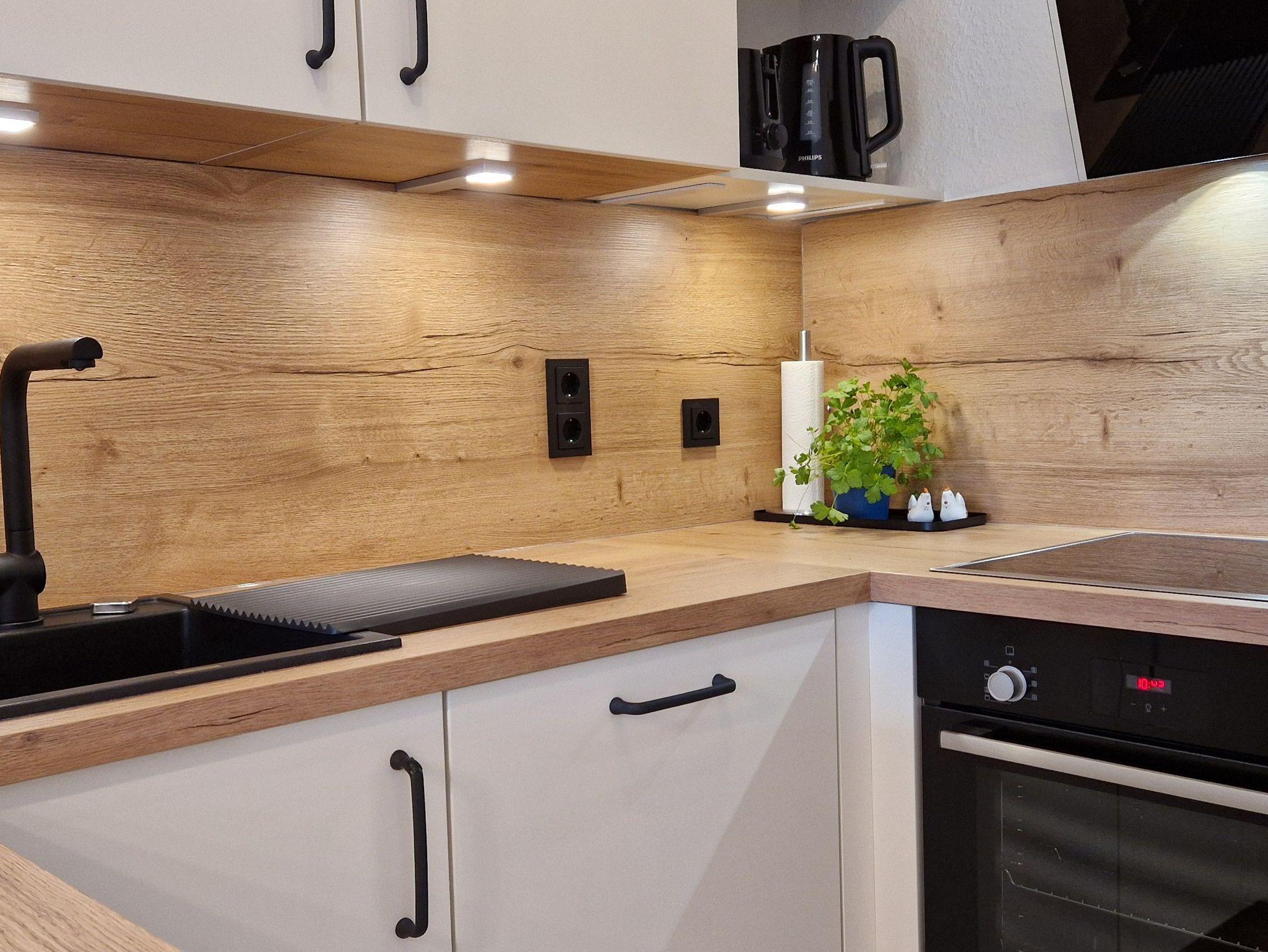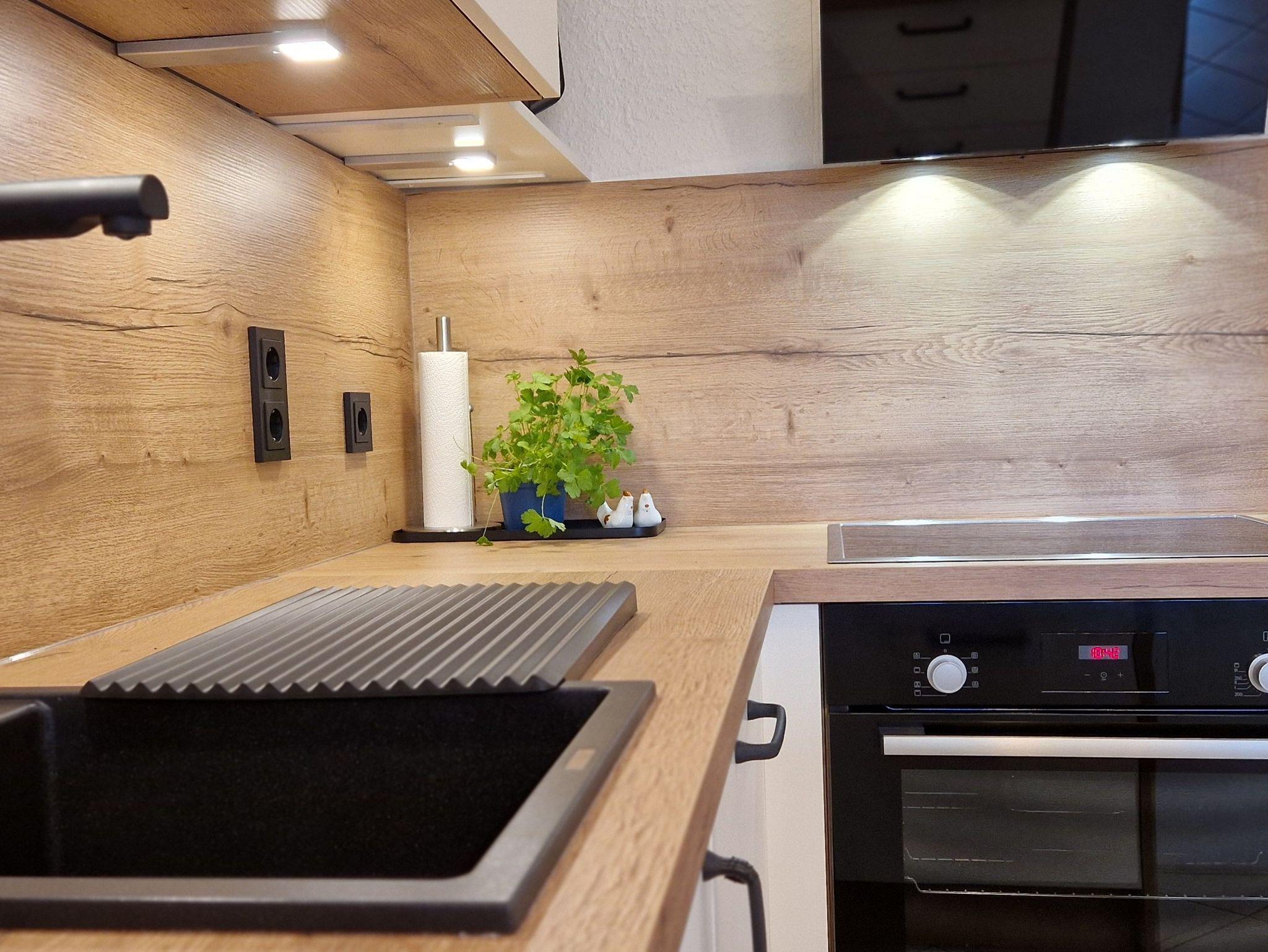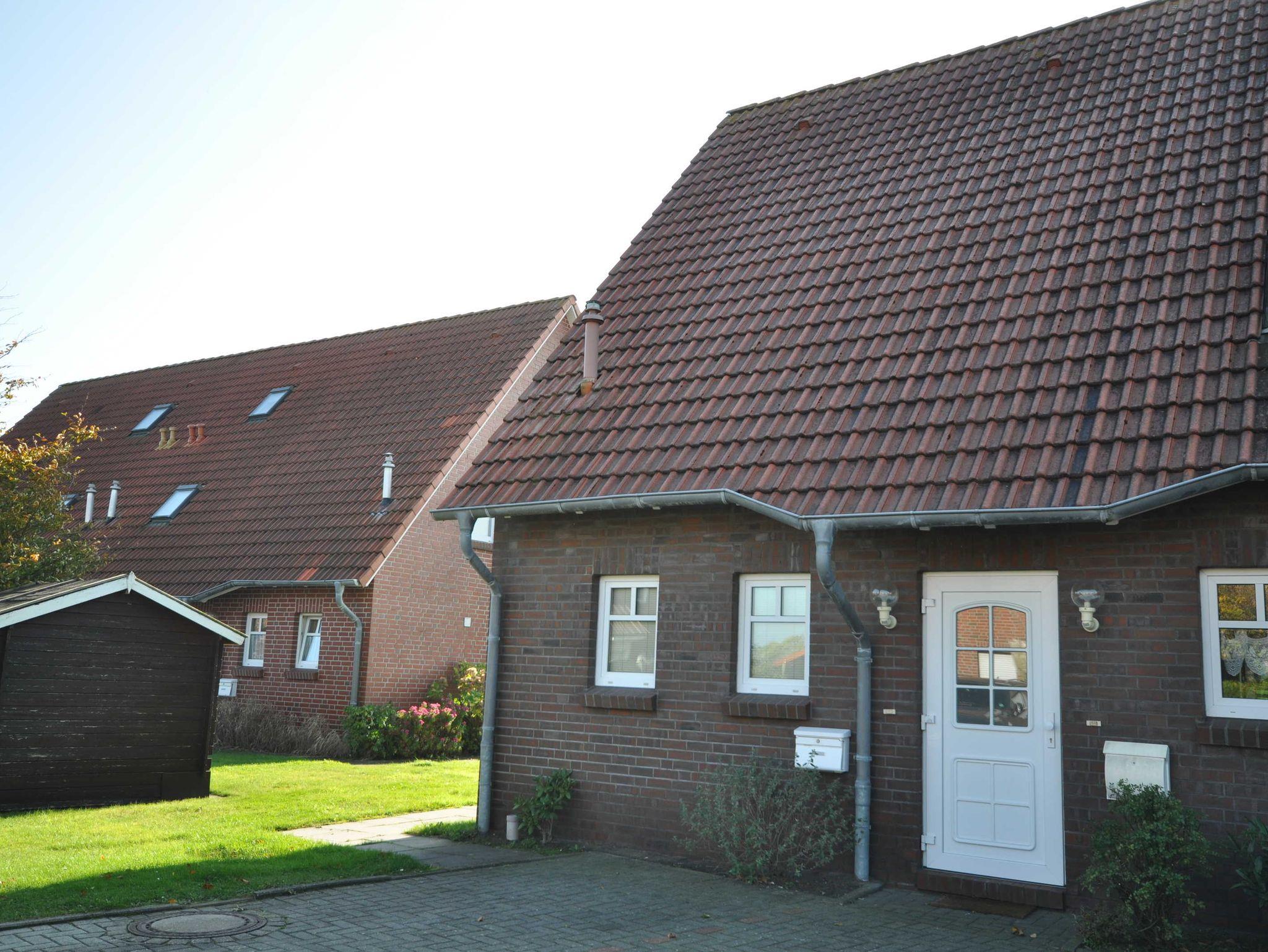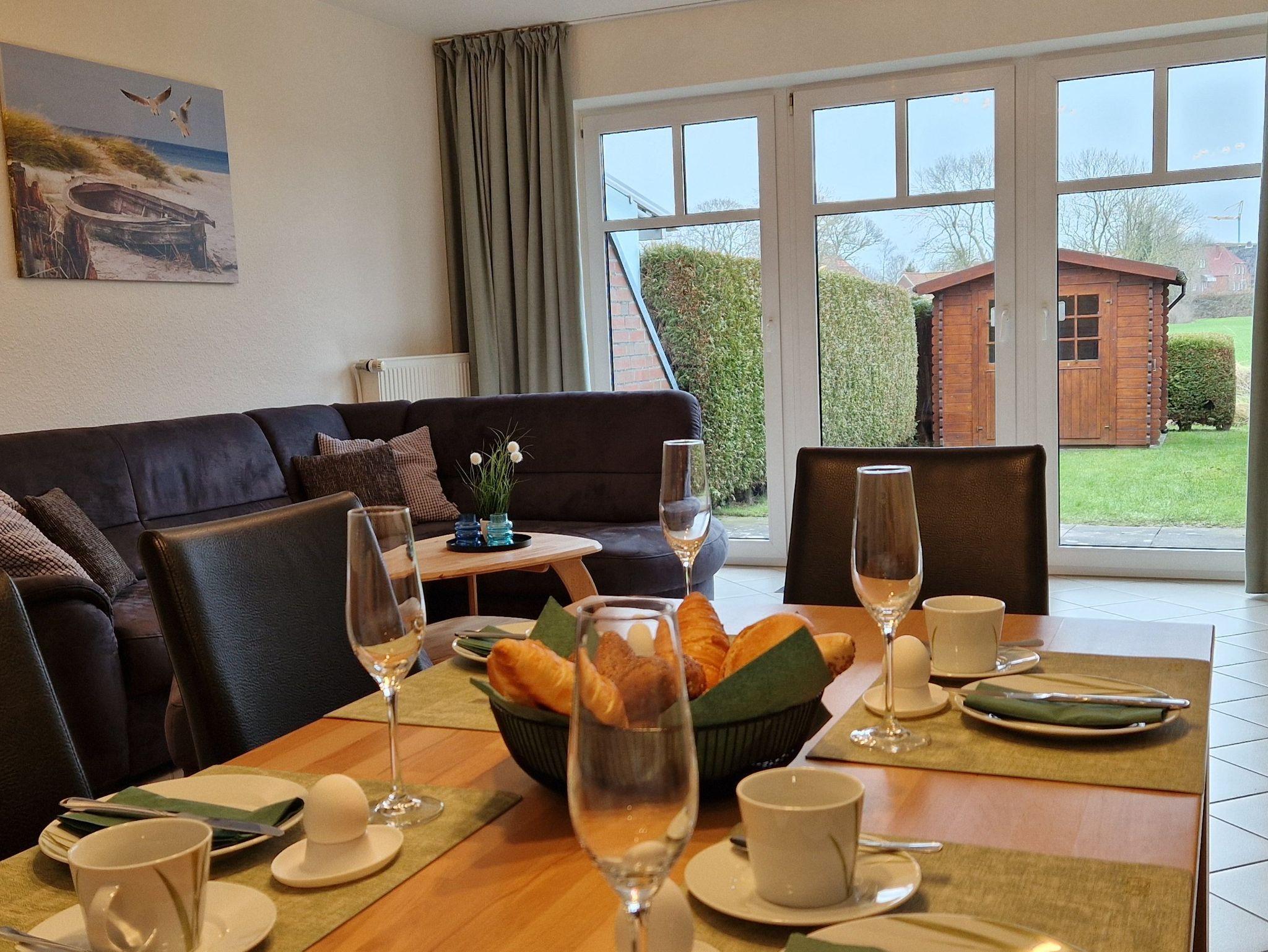 Modernes Reihenmittelhaus mit Terrasse, Garten und Blick auf Museumshafen in Carolinensiel.