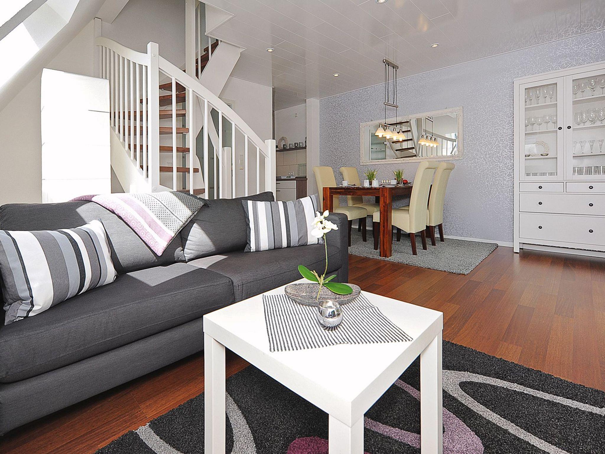 Größe ca. 65 Quadratmeter, Wohnraum mit integrierter Küche, Schlafzimmer, zweites separates Schlafzimmer/Kinderzimmer, Badezimmer mit Dusche, Waschtisch und WC, Erdgeschoss, Obergeschoss, Terrasse, Koffer-/Abstellraum, optimal für 1 bis 3 Personen und zusätzlich ein Kleinkind.