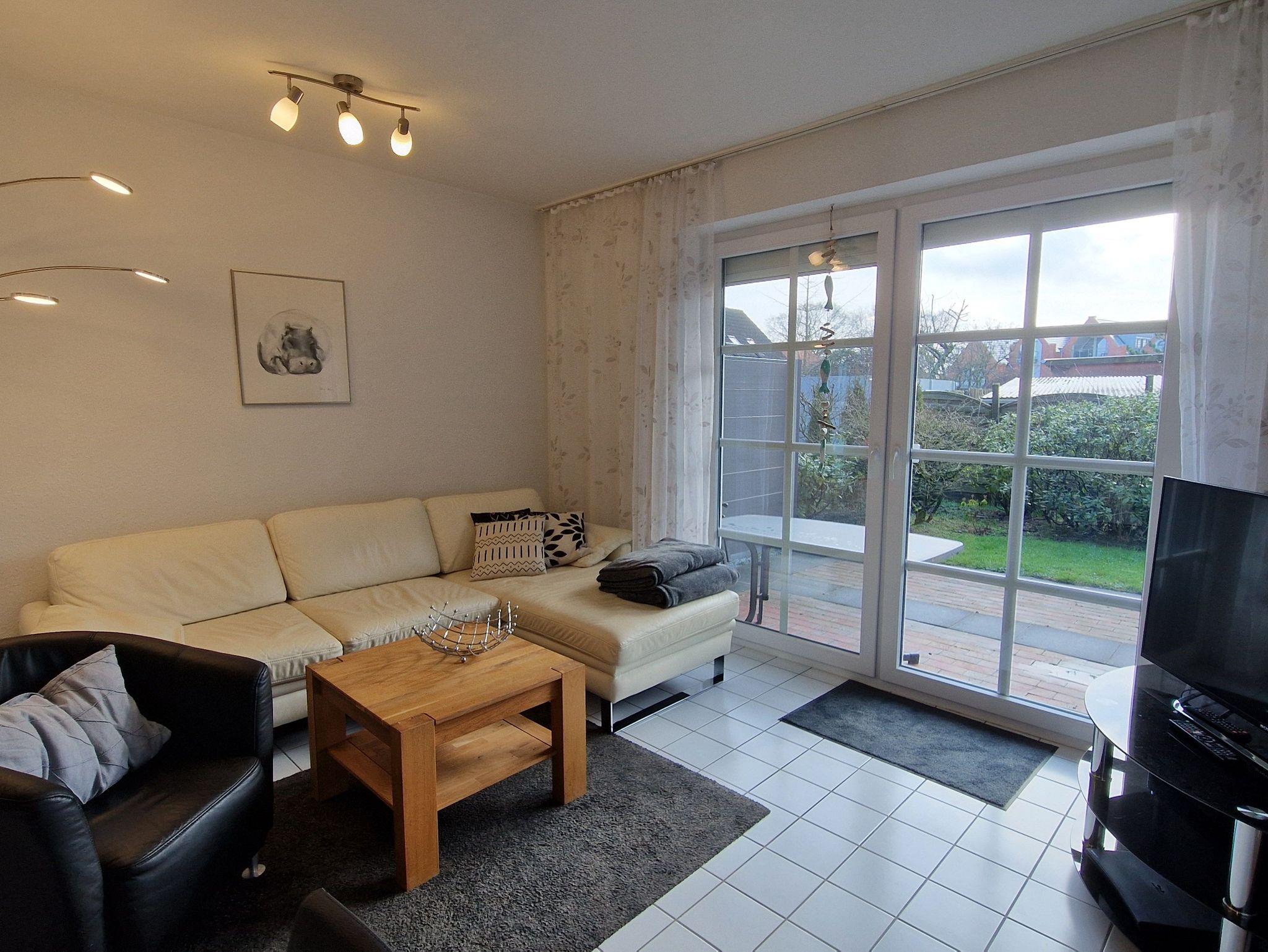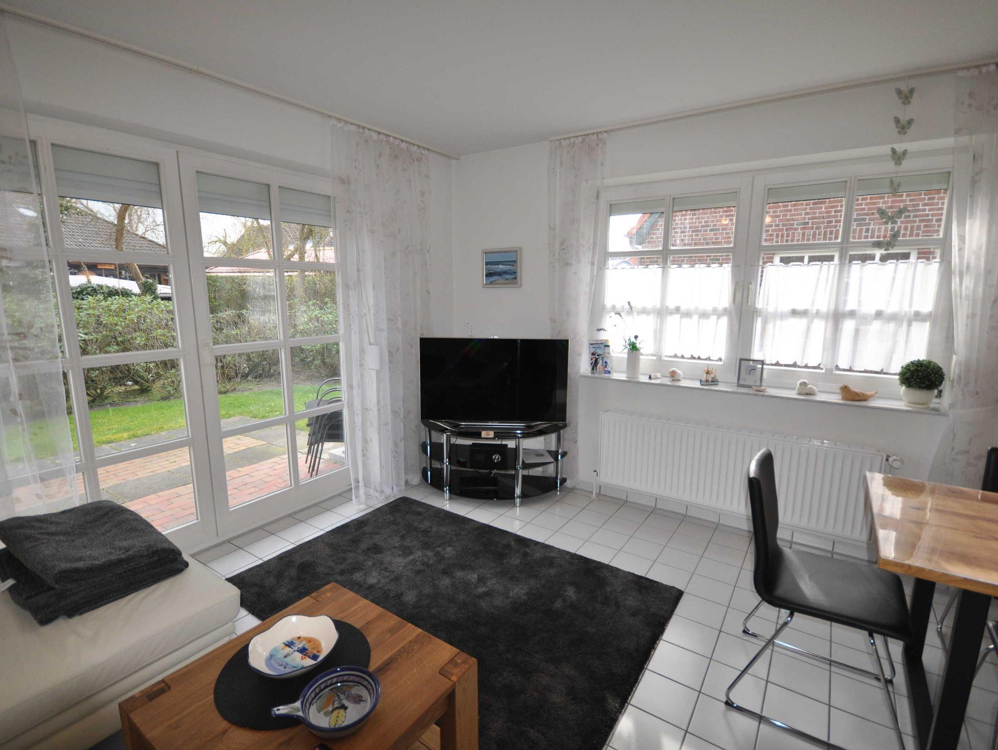 Gemütliche Doppelhaushälfte mit Terrasse und Garten in Carolinensiel, ideal für Familien und Radfahrer.