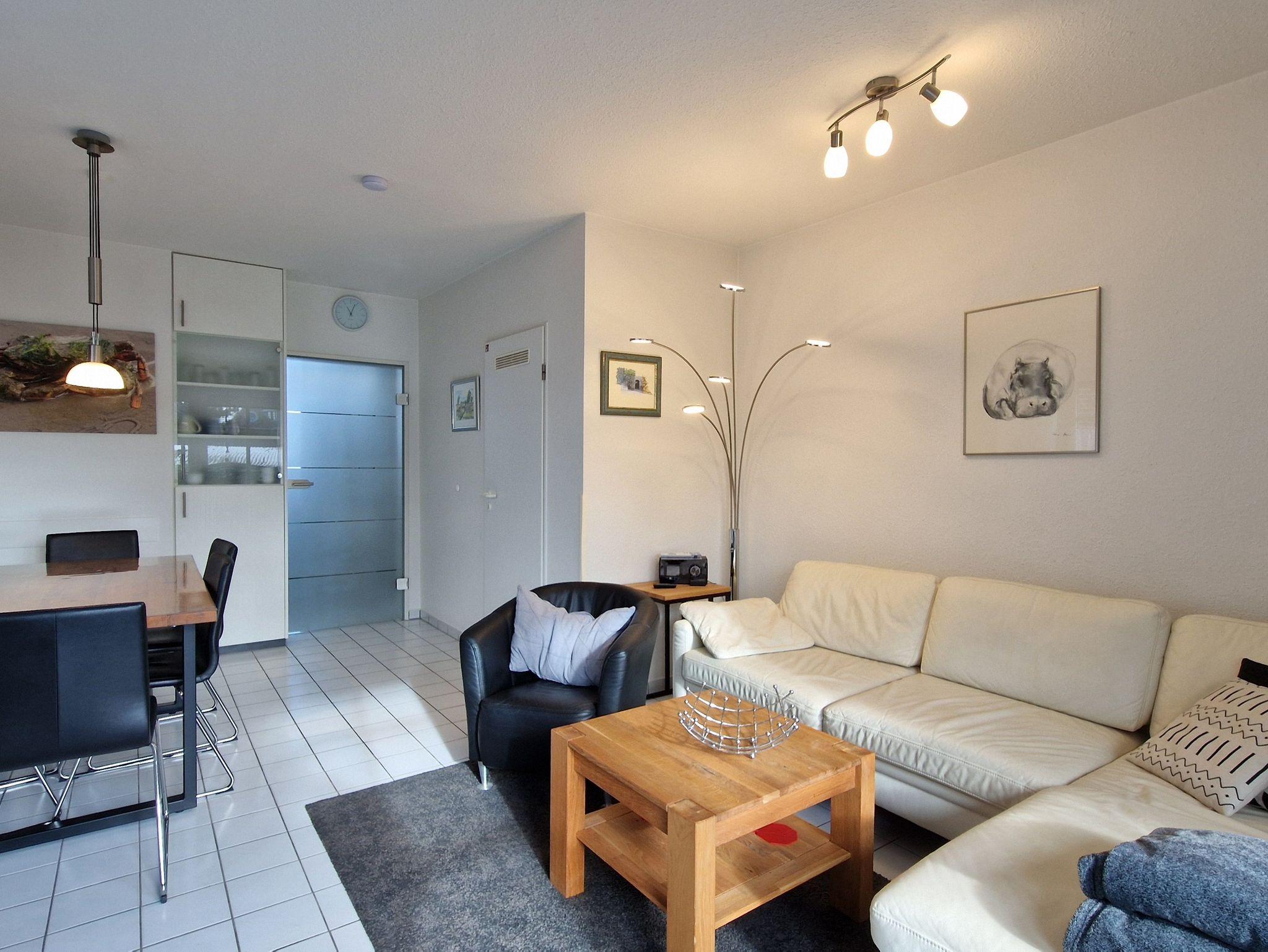 Die Doppelhaushälfte ist ansprechend und modern ausgestattet und bietet Platz für bis zu 4 Personen und ein Baby/Kleinkind. Im Erdgeschoss befinden sich ein heller Wohn- und Essbereich mit Ausgang zur Südterrasse, eine separate, vollständig ausgestattete Küche sowie ein Gäste-WC. Das 1. Obergeschoss verfügt über ein Schlafzimmer mit Doppelbett und ein Schlafzimmer mit zwei Einzelbetten sowie über ein Badezimmer mit Dusche und WC. In einem ausgebauten Dachstudio befindet sich ein weiteres Doppelbett mit TV. WLAN steht Ihnen kostenfrei zur Verfügung. Im Erdgeschoss sind Fliesen, im Obergeschoss ist Vinyl verlegt.