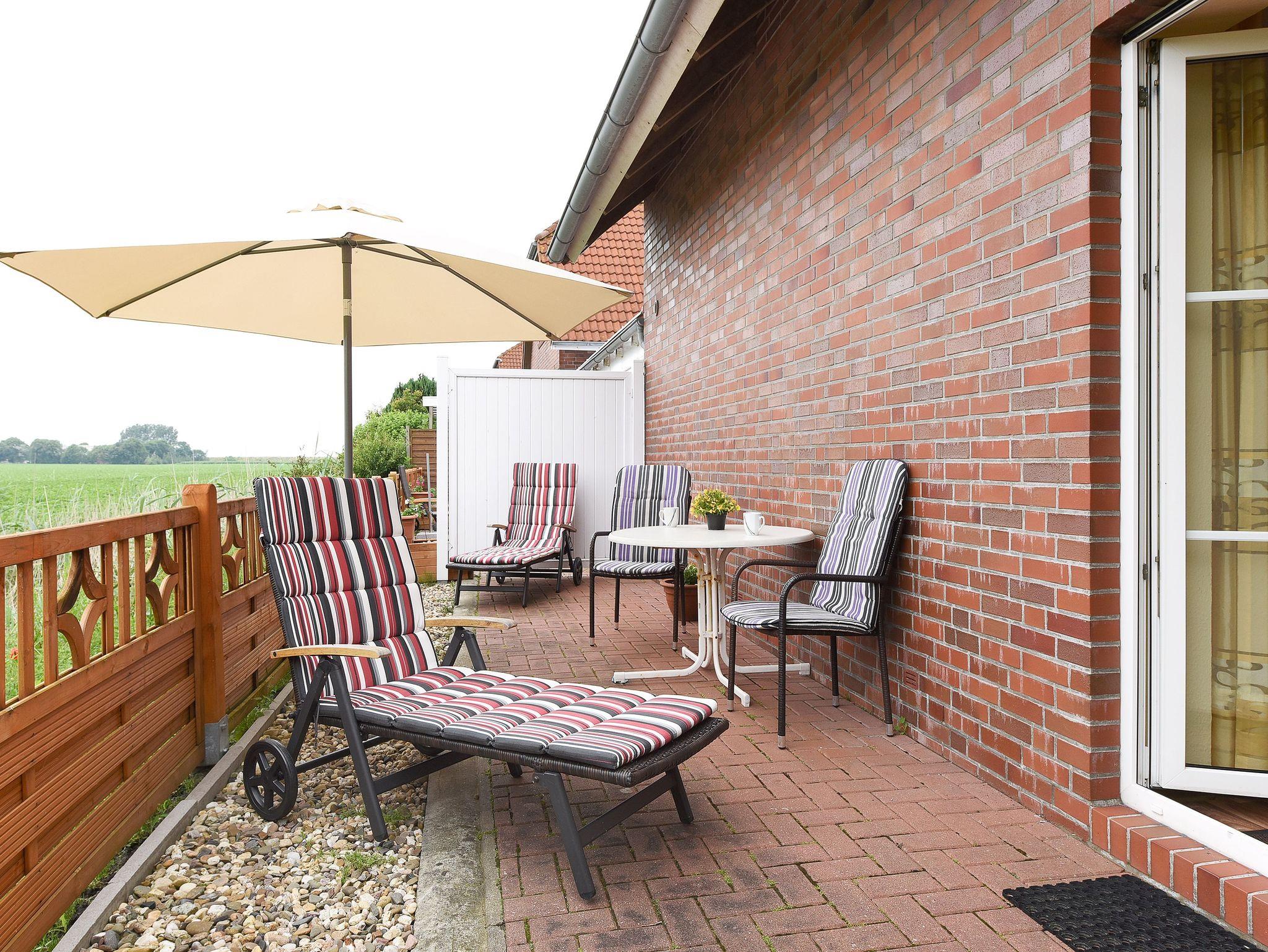Moderne Ferienwohnung Koje mit Terrasse nahe Nordsee und Museumshafen in Carolinensiel-Harlesiel.