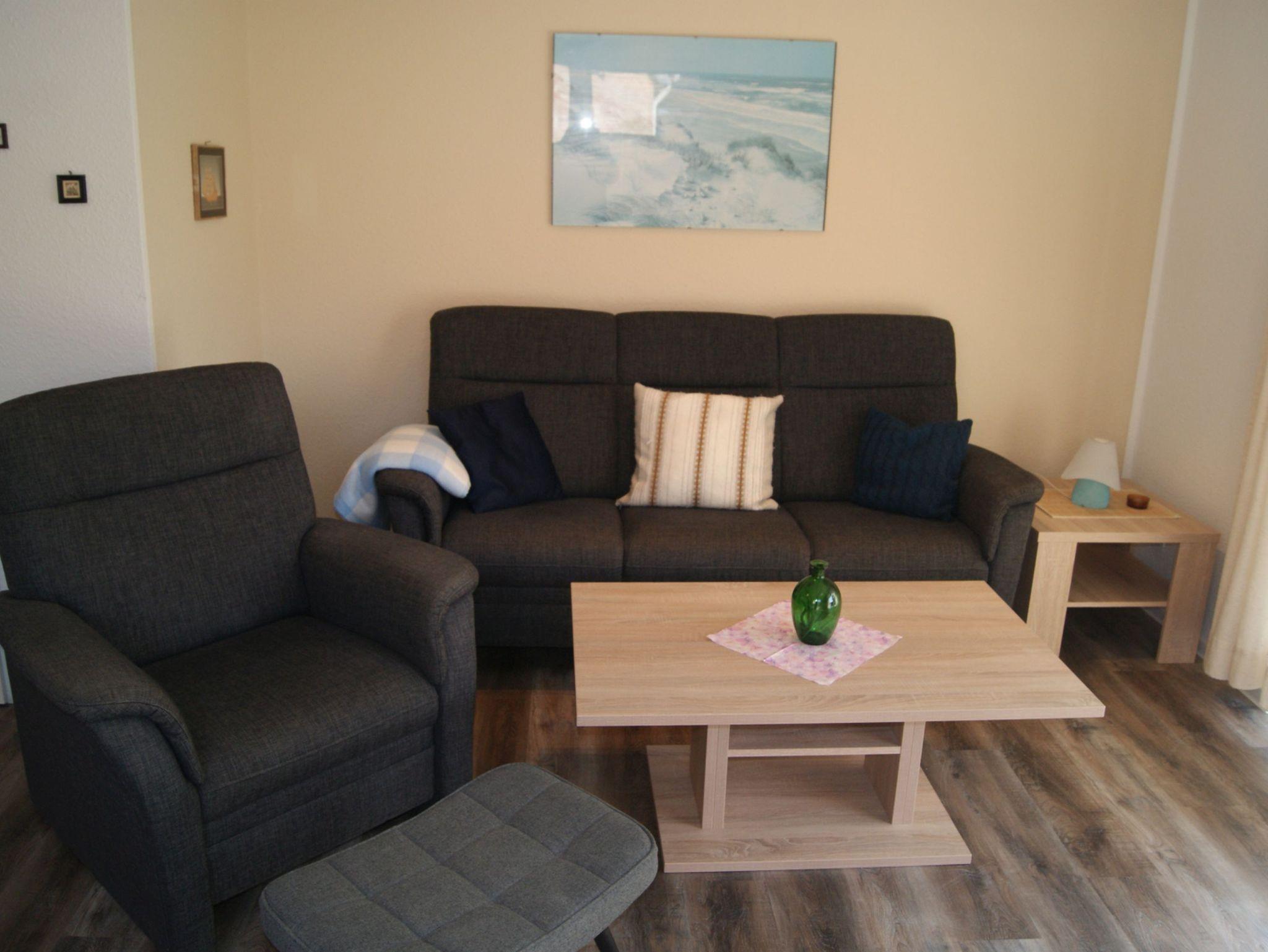 Doppelhaushälfte aufgeteilt in 3 Etagen: EG: sep. Küche, Wohn-Esszimmer, Gäste-WC, Abestellraum; OG: Elternschlafzimmer mit Kinderbett, Kinderzimmer mit 2 Betten, Bad mit Dusche, WC, Waschmaschine und Wäschetrockner; Dachgeschoß: mit 2 Betten. Vermietungen Juli und August nur von Samstag zu Samstag. Bettwäsche und Handtücher bitte mitbringen. WLAN im Haus. Alle Preise zzgl. Gästebeitrag.