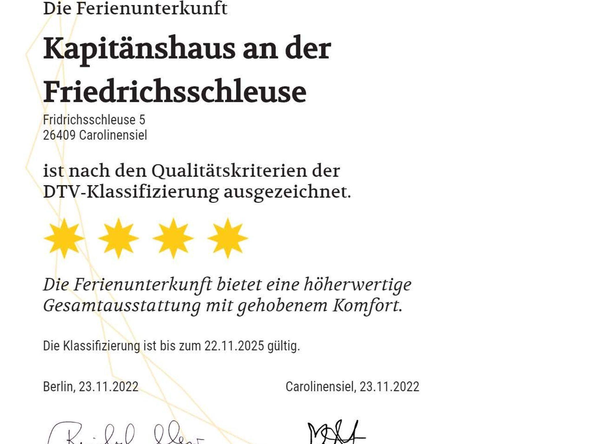 Das Kapitänshaus an der Friedrichsschleuse ist vom Deutschen Tourismusverband DTV mit 4 Sternen ausgezeichnet und verspricht gehobenen Komfort und eine erstklassige Ausstattung.