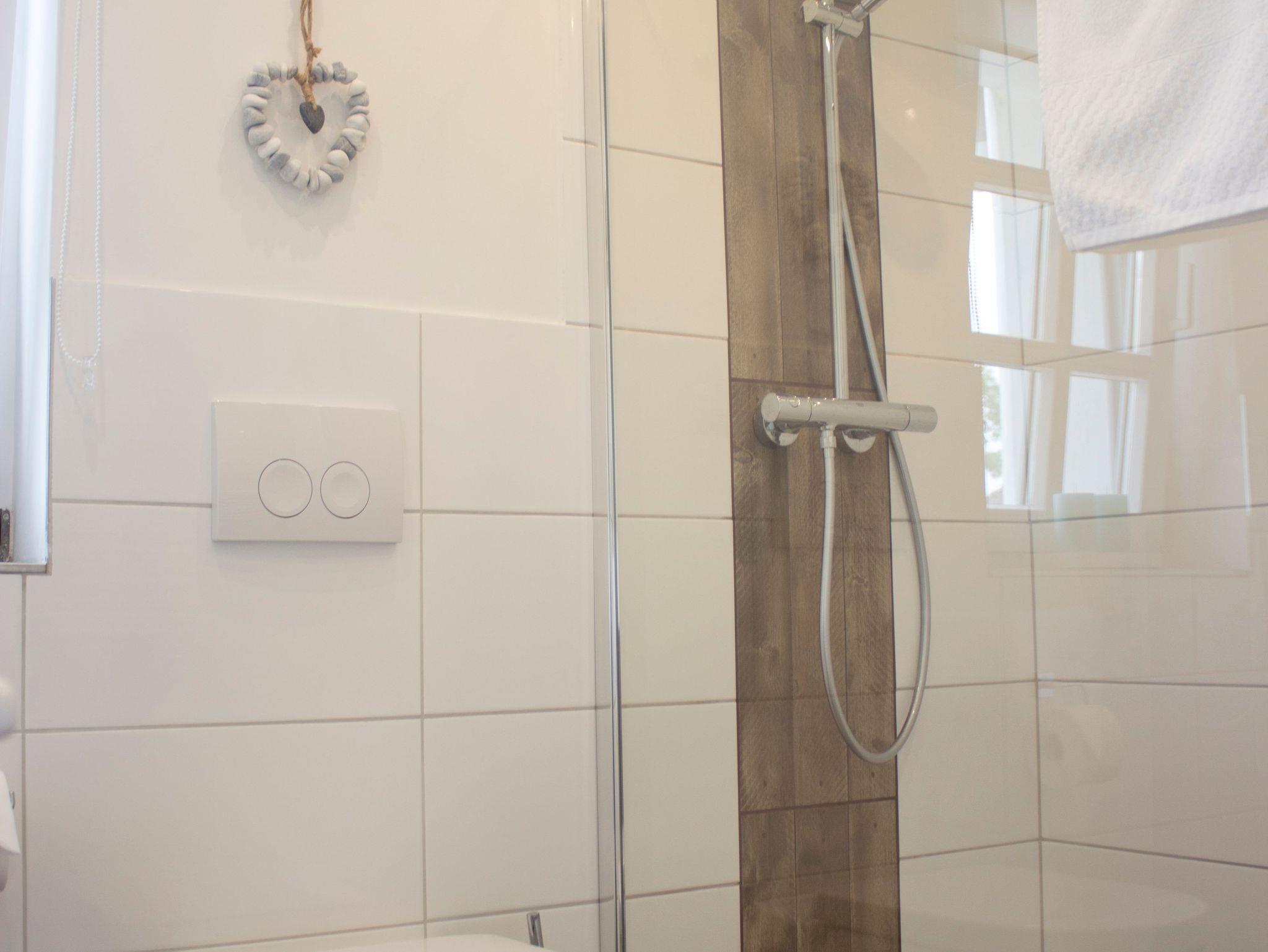 Sowohl im EG als auch im UG finden Sie modernste Wellnessbäder mit hochwertiger Ausstattung: Ebenerdige Regenduschen, Handtuch- und Fußbodenheizung, sowie einer Infrarotsauna für wohltuende Wärme nach einem Tag am Meer.
