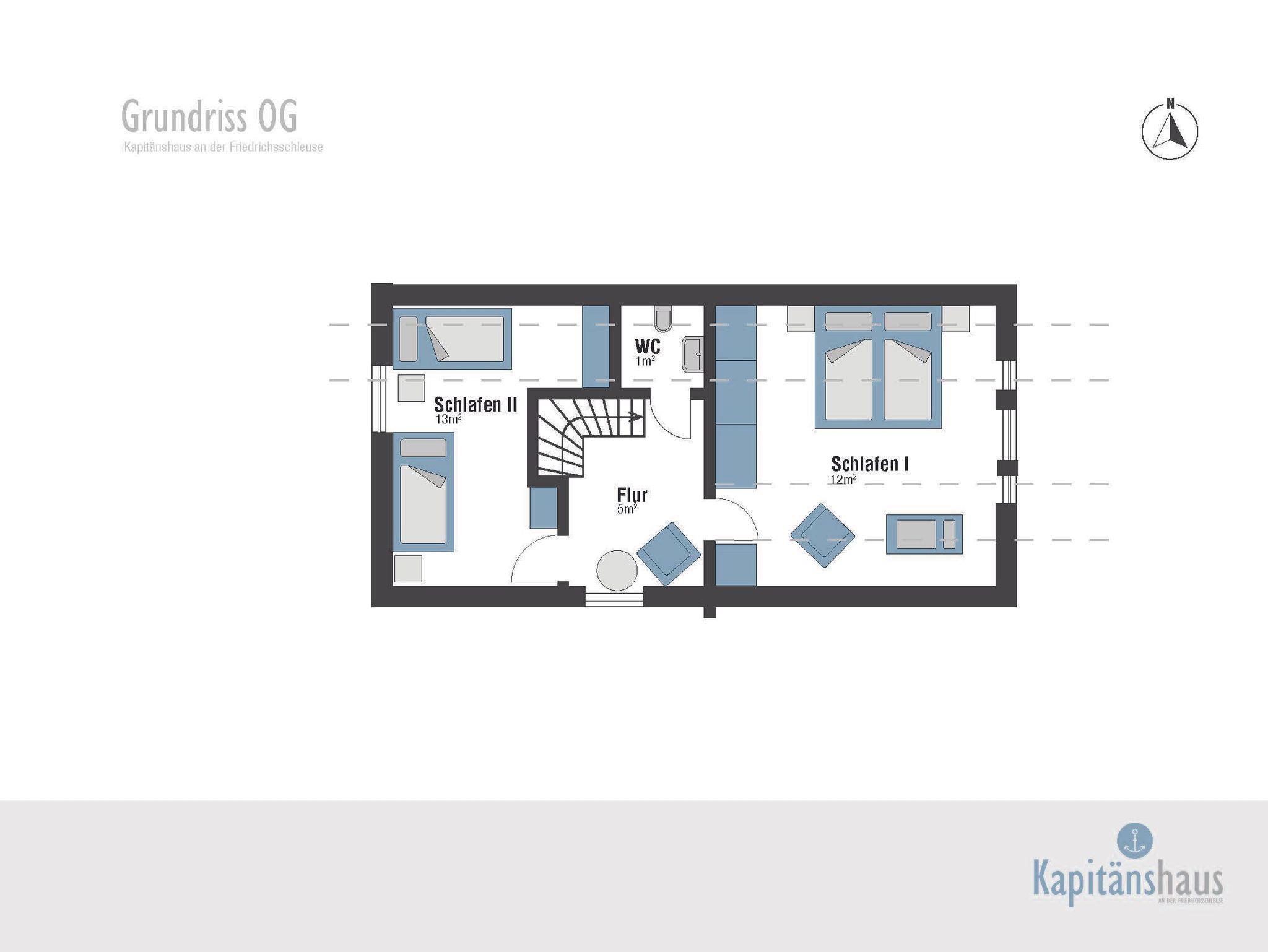 Das lichtdurchflutete Haus verfügt über drei Etagen und bietet mit über 90m² ausreichend Platz für 4 Personen. Das Kapitänshaus an der Friedrichsschleuse ist das perfekte Urlaubsdomizil für Gäste, die nach dem besonderen Etwas suchen.