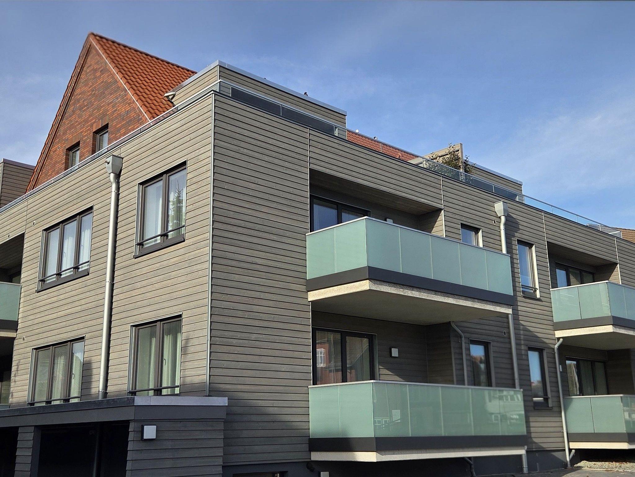 Modernes Apartmenthaus Harleblick mit Balkon und Terrasse im Herzen von Carolinensiel, direkt an der Harle gelegen.