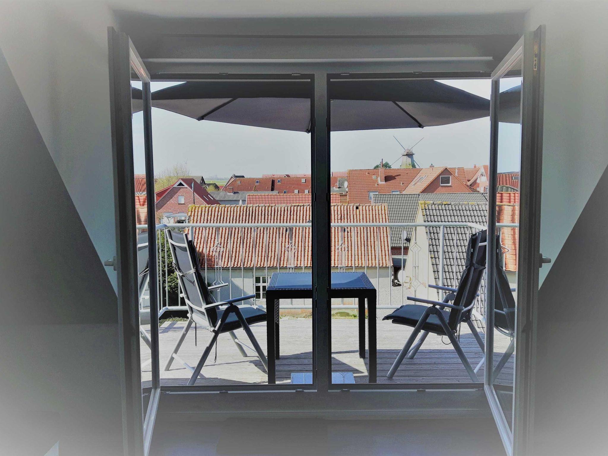 Moderne Ferienwohnung Claudia in Carolinensiel mit Balkon, Küche, WLAN und nur 300 m vom Museumshafen entfernt.