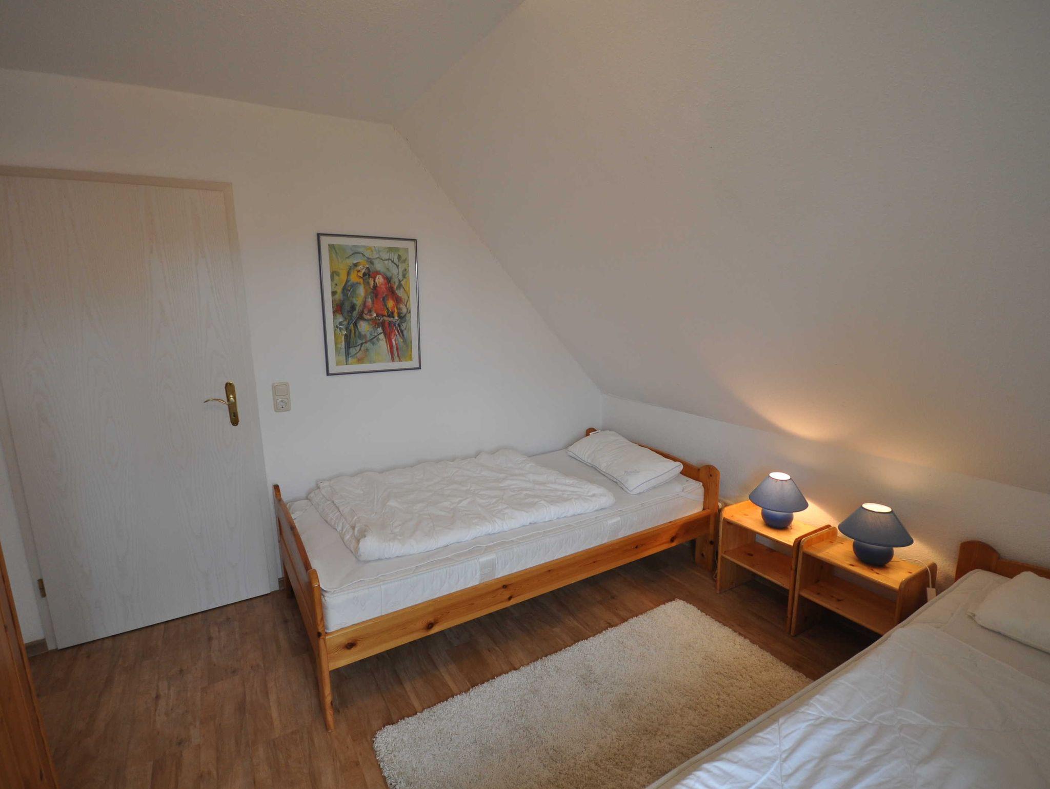 Diese Doppelhaushälfte bietet mit einer großzügigen Raumaufteilung sowie drei Schlafzimmern ausreichend Platz für bis zu 5 Personen und ein Baby/Kleinkind. Im Erdgeschoss befinden sich ein großer Wohn- und Essbereich mit einer offenen Küche und ein Dusch/WC. Das Obergeschoss ist in drei Schlafzimmer (1x1 Doppelbett, 1x2 Einzelbetten, 1x1 Einzelbett inkl. Ausziehfunktion) und ein Badezimmer mit Dusche und WC aufgeteilt. Alle Fenster sind mit Rollläden, die Böden mit Fliesen bzw. Laminat ausgestattet. WLAN steht Ihnen kostenfrei zur Verfügung. Das Ferienhaus besticht durch eine geschmackvolle und dem Standard entsprechende Komplettausstattung.