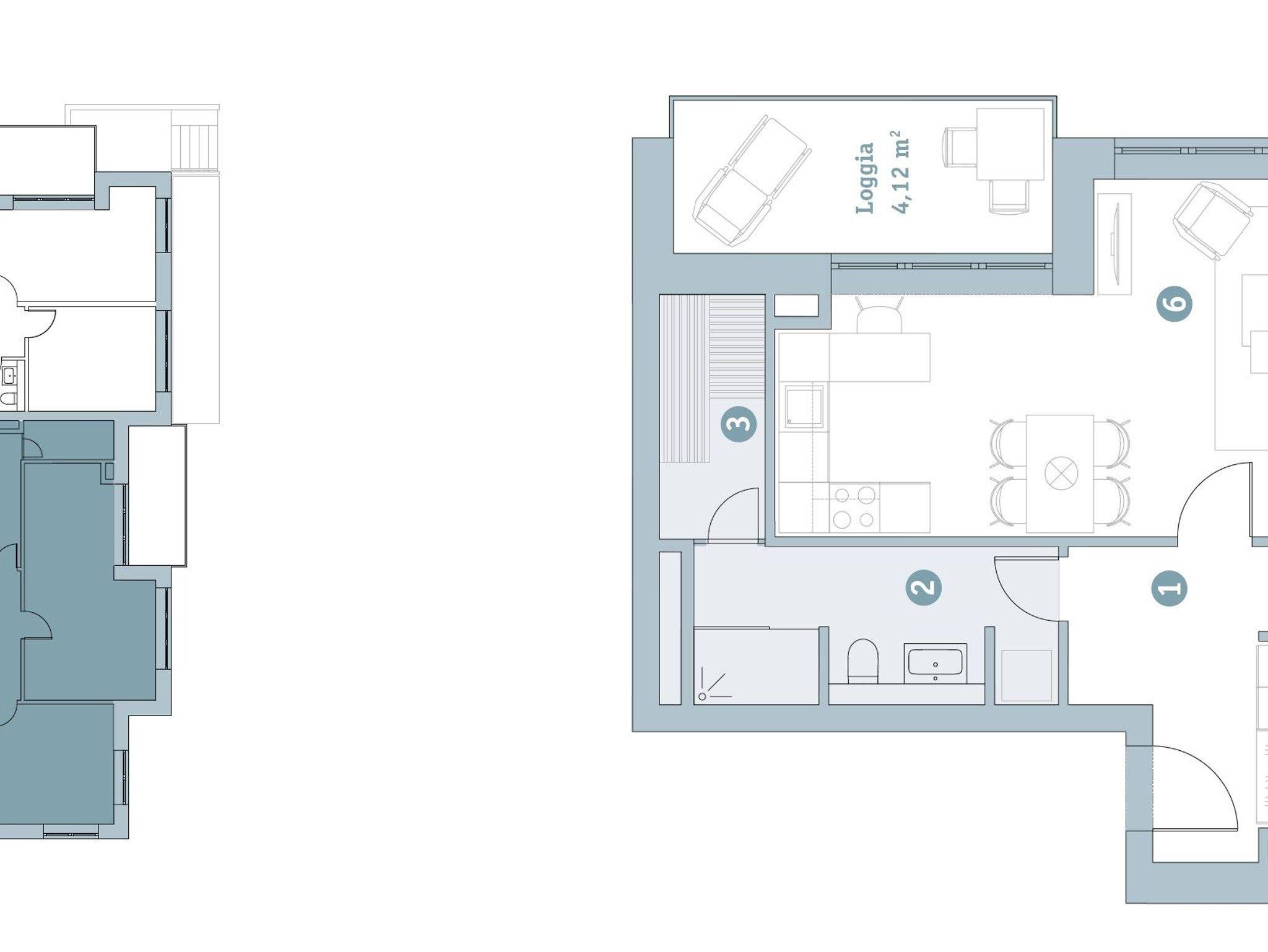 Auf rund 80 m² erwartet Sie ein lichtdurchfluteter Wohn- und Essbereich mit einer vollausgestatteten Küche und Zugang zur Loggia, perfekt für entspannte Stunden nach einem Tag an der Nordsee.